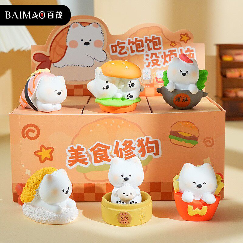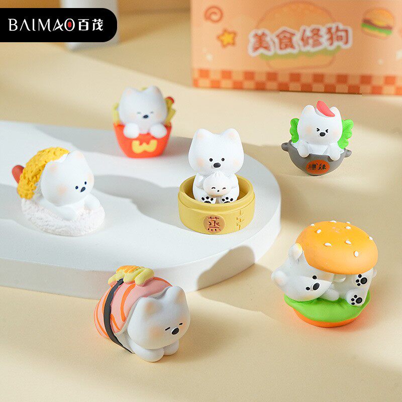 原创西高地狗公仔树脂摆件潮玩精致车载家具桌面美食狗装饰品