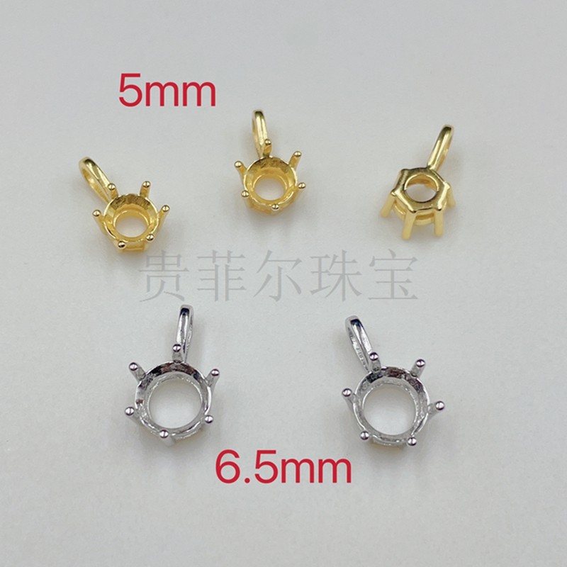 圆形4--5--6.5--8mmS925银镀白金吊坠空托 不含宝石 可代镶莫桑石