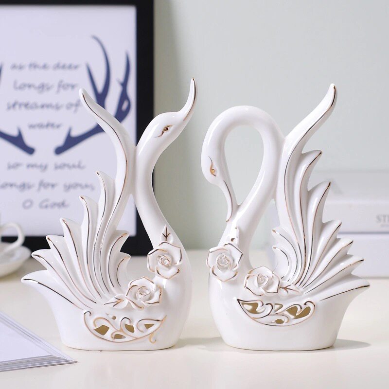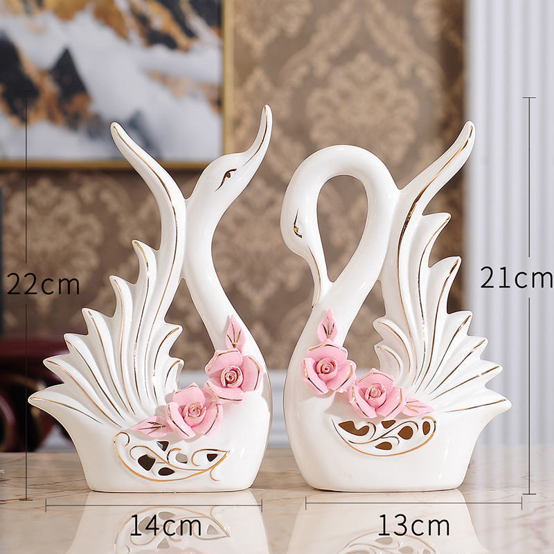 宏赫客厅轻奢风现代简约创意茶几电视柜陶瓷雕刻手工描金捏花天鹅