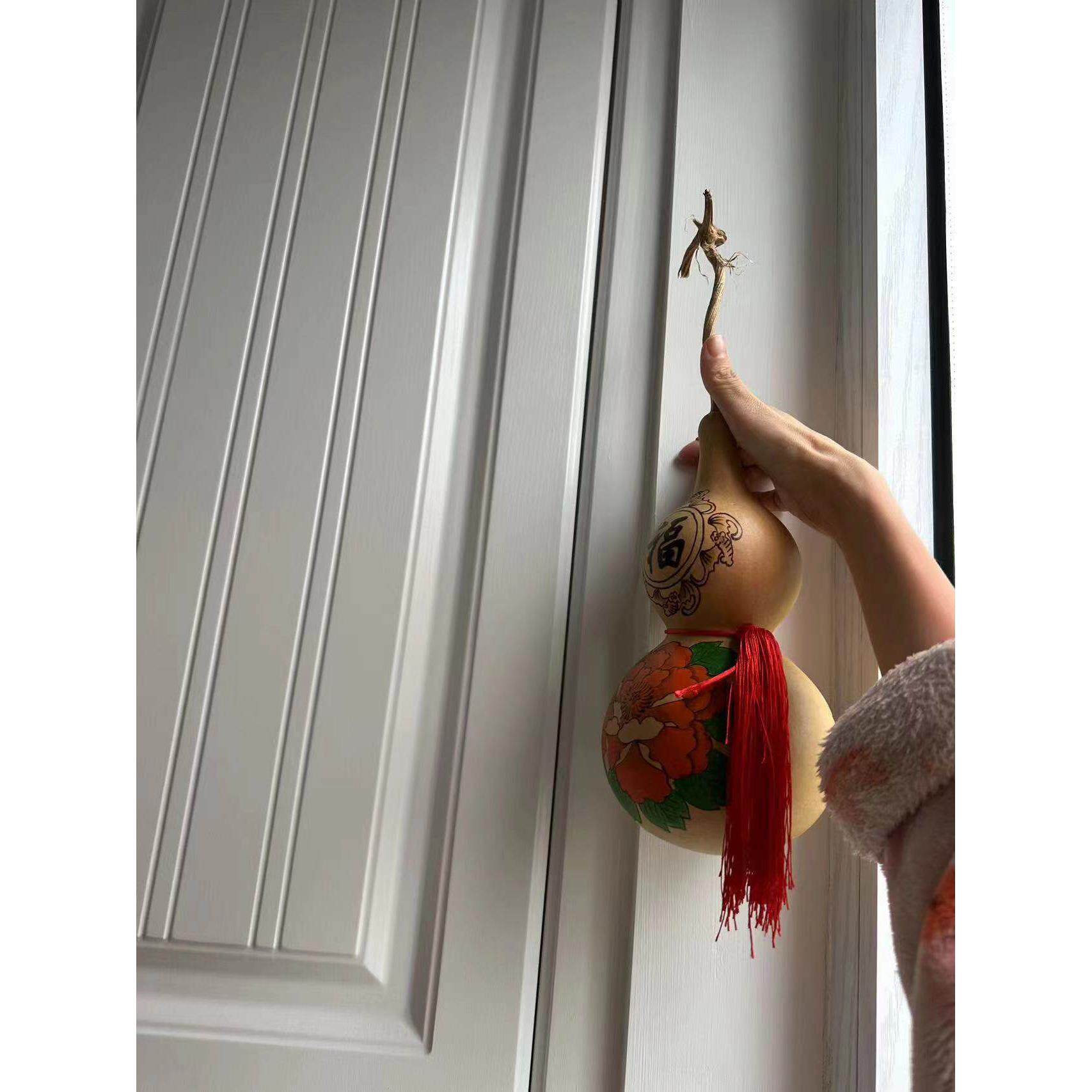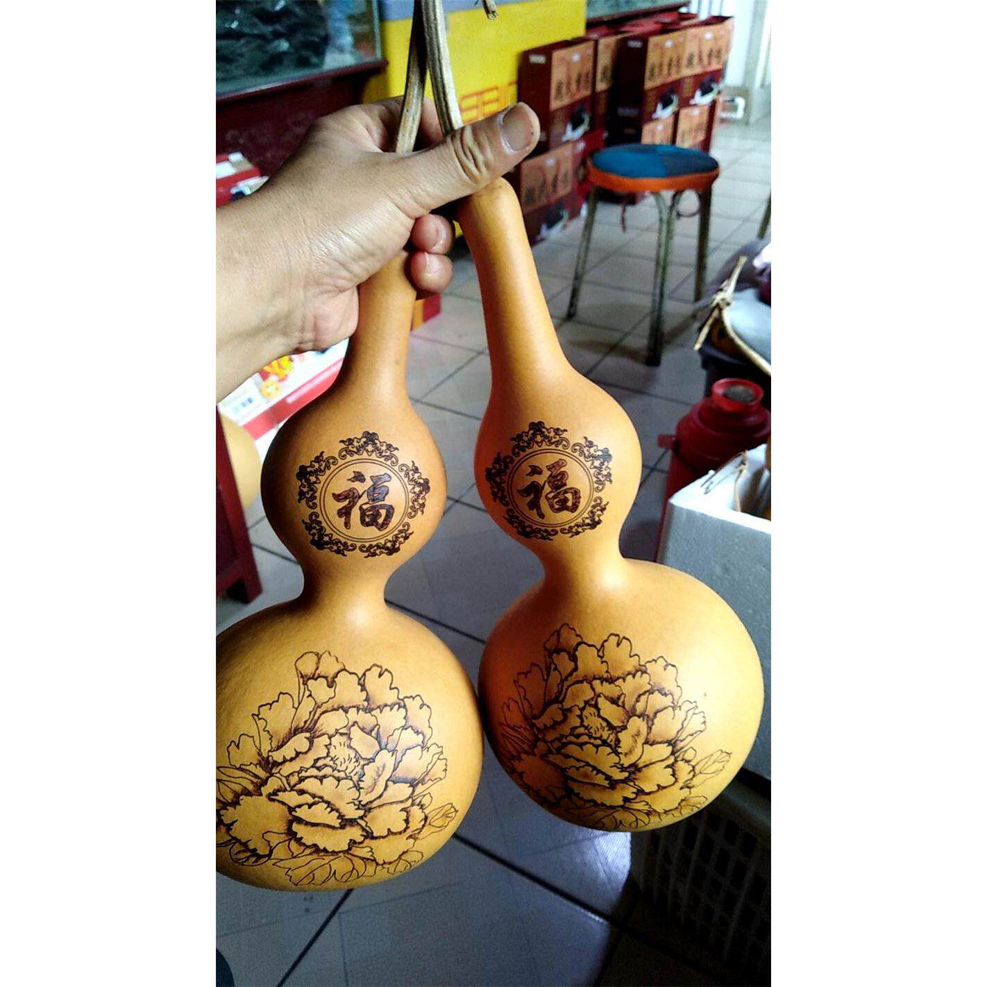 家居镇宅招财天然葫芦大摆件花开富贵牡丹烙画饰品书房客厅大门对