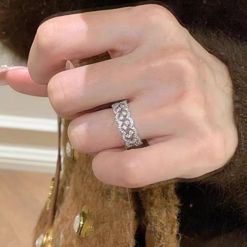 花边仿闪钻蕾丝戒指轻奢高级感叠戴食指戒复古气质精致宫廷风指环