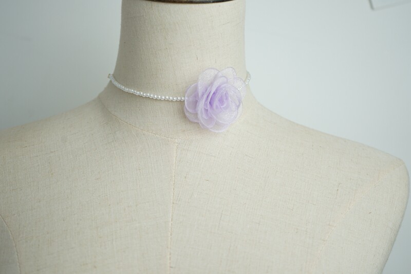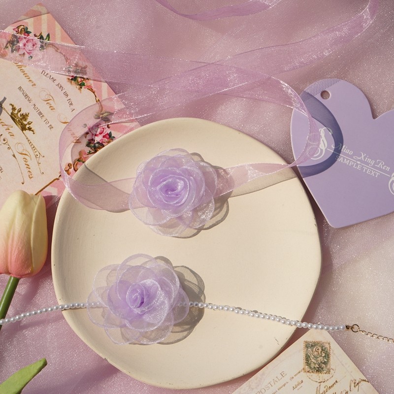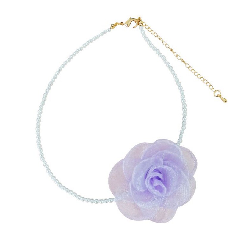 韩版甜美紫色超仙气花朵珍珠项链锁骨链少女气质复古choker颈链