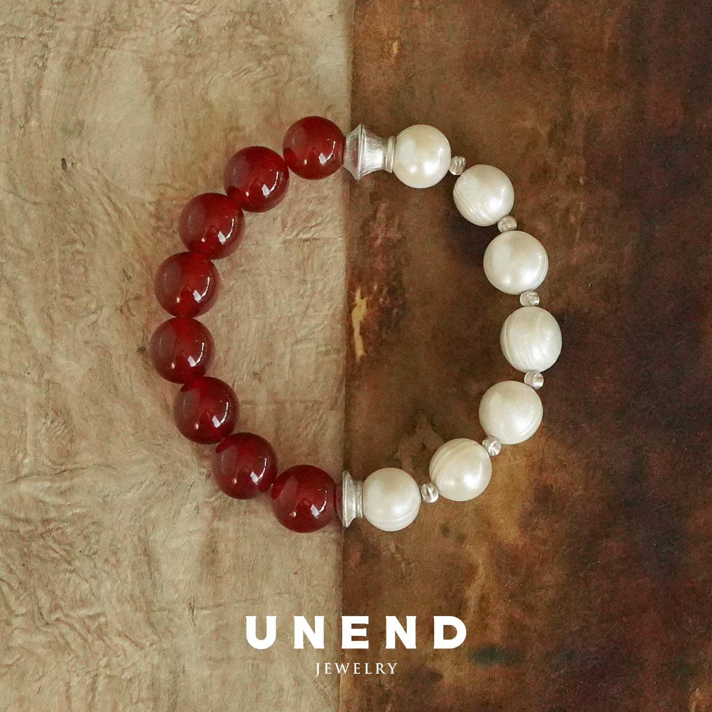 UNEND止续 红玛瑙珍珠Sunset流霞手链 纯银设计新中式手串 默叙