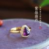 小银匠天然紫水晶纯银开口九紫离火葫芦戒指女国风紫色水晶金包银