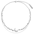 小众925纯银白蝶贝爱心双层项链女镶钻不掉色简约高级冷淡锁骨链