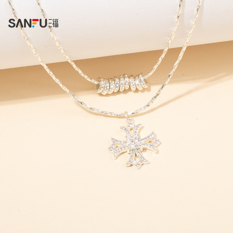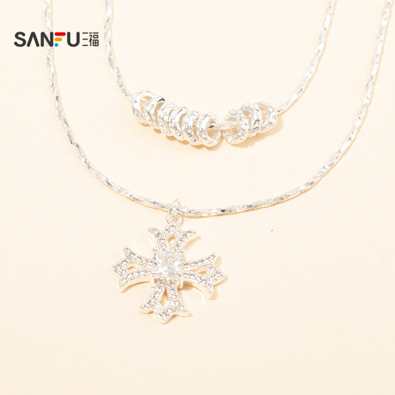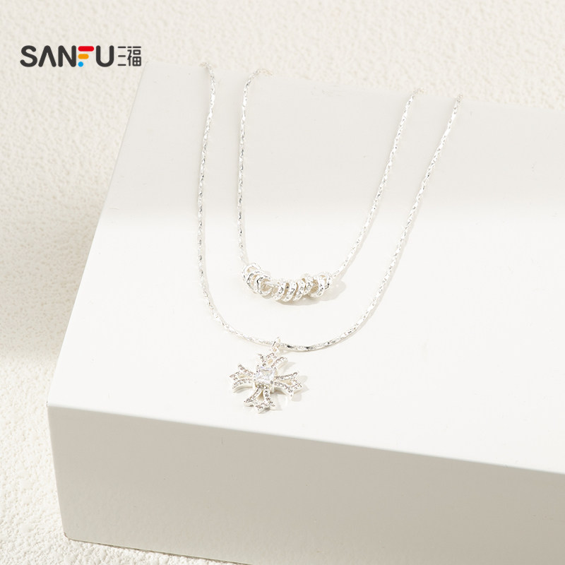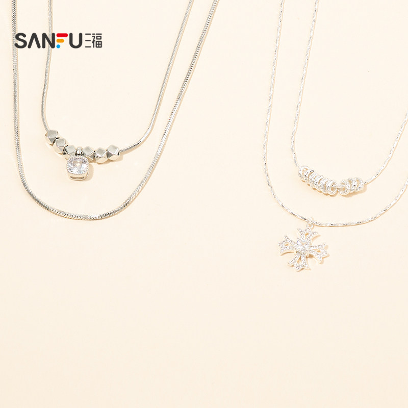 三福休闲双链闪星短项链单条 时尚气质个性首饰配饰链条851701