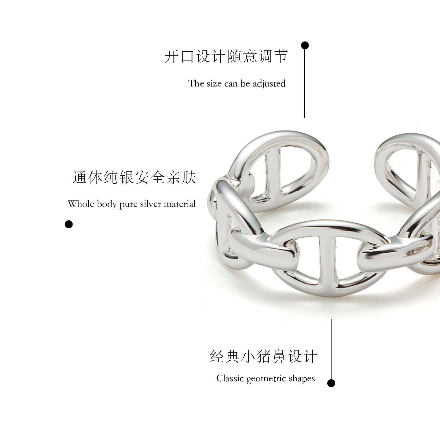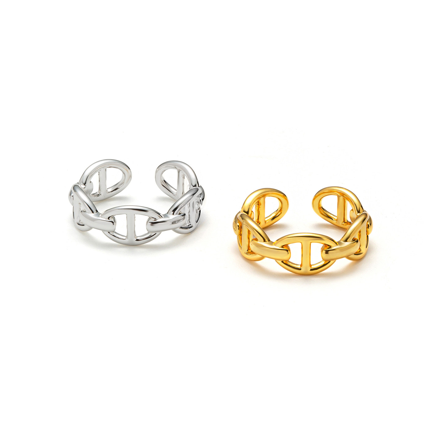 VOGUEWANG高端百搭时尚博主同款 小猪鼻S925纯银金色开口戒指环