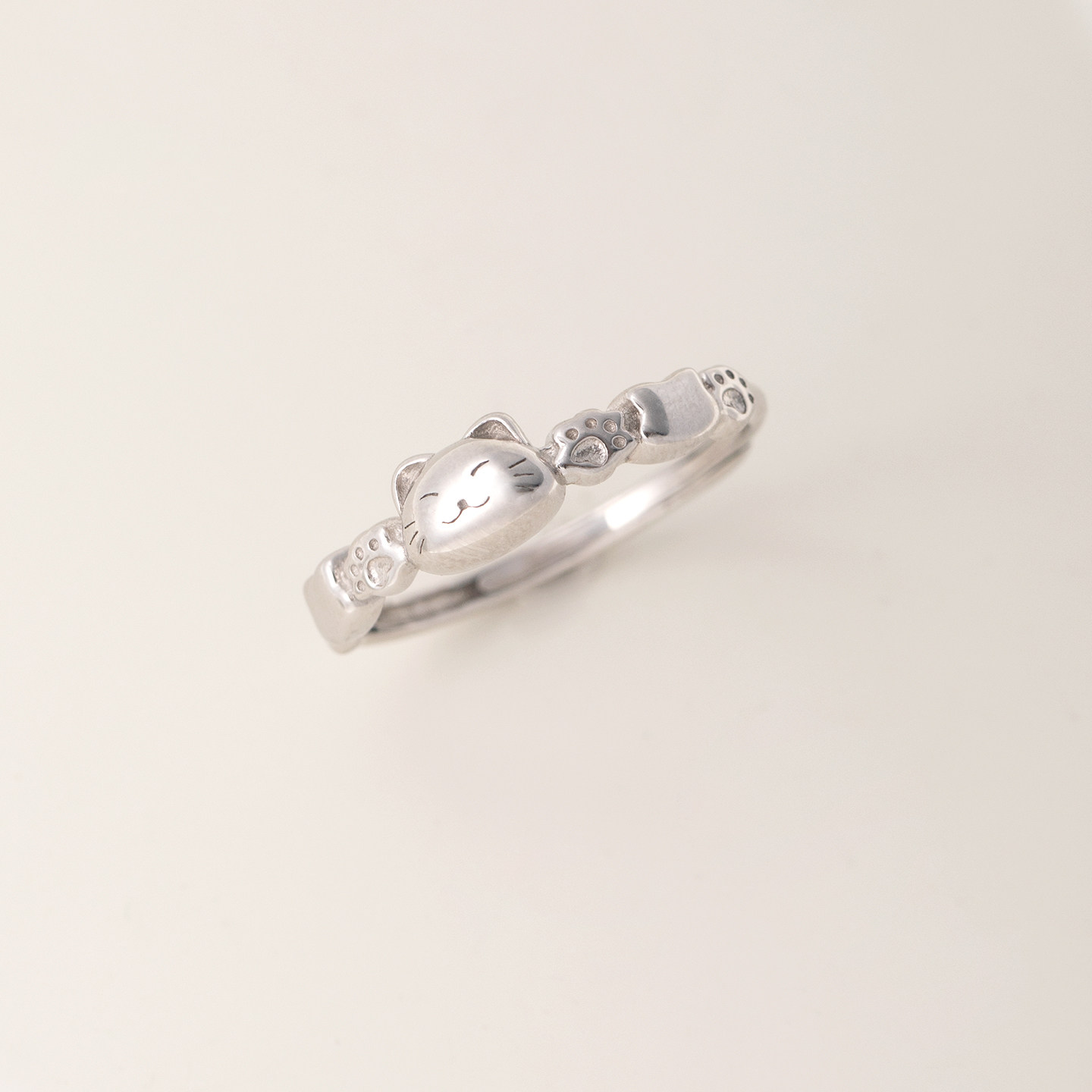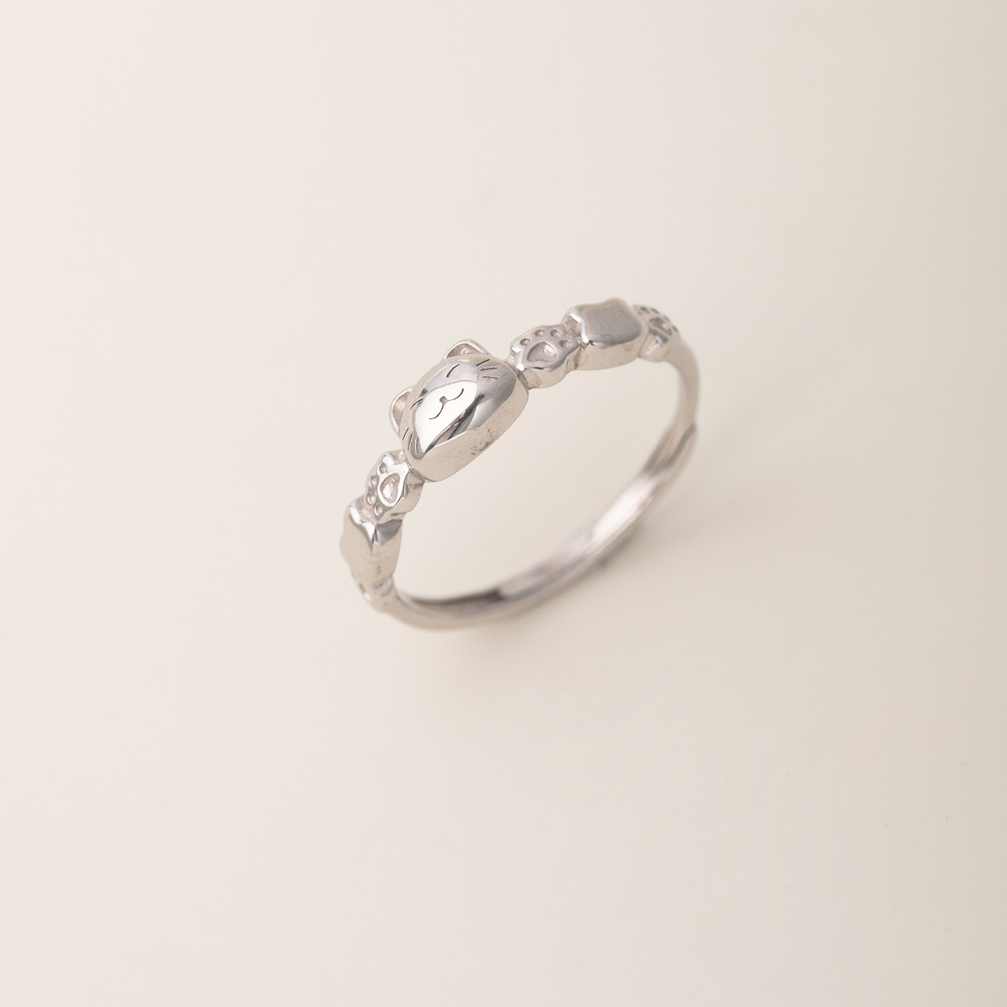 猫蛰S999足银小猫咪猫爪戒指可爱甜美纯银开口指环小众设计食指戒