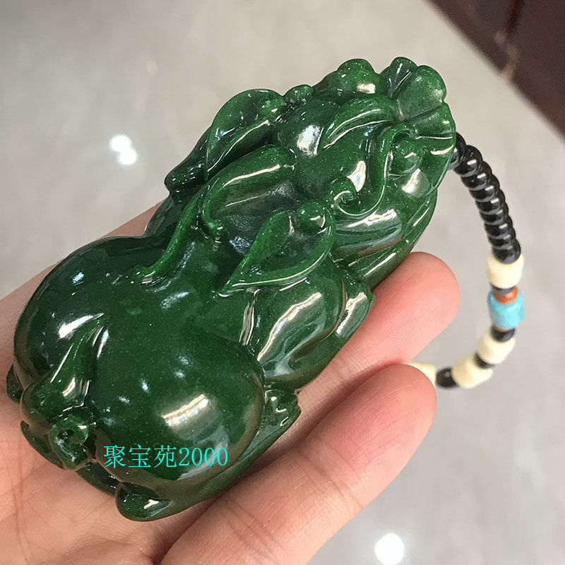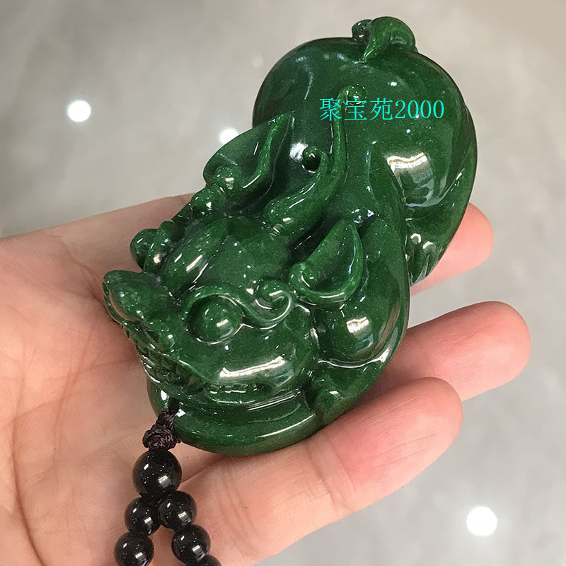 绿色玉石皮休瑞兽摆件神兽文玩仿新疆和田玉碧玉招财转运貔貅把件