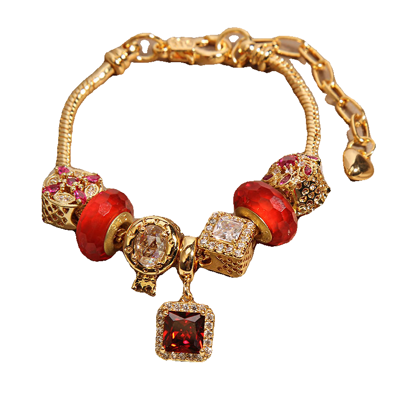 小众轻奢14K金红色琉璃珠手链女韩版水晶手串送学生闺蜜手镯礼物