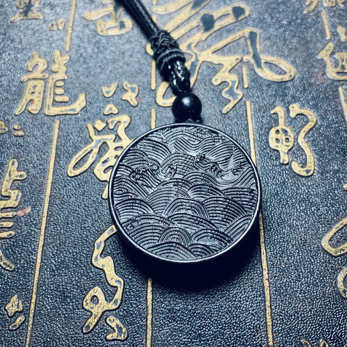 黑檀木水波吊坠五行缺水项链男女饰品补水黑色坎为水水风井水泽节