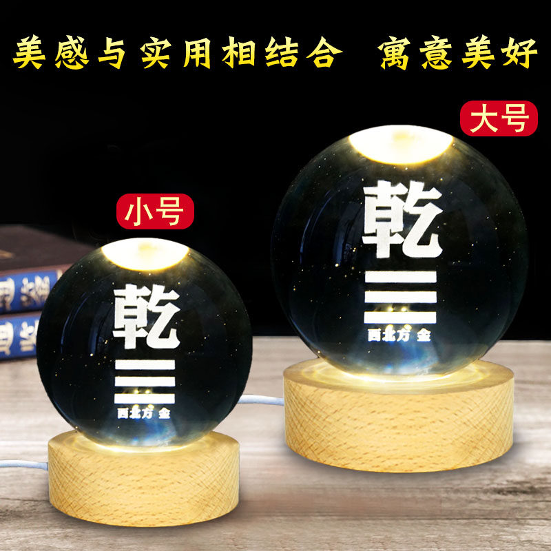 房屋缺角补角水晶球摆件缺西北角乾卦西南坤卦发光白水晶球装饰品