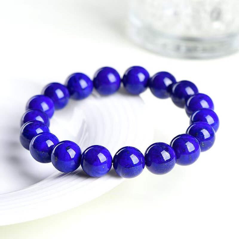 天然阿富汗青金石真品老矿料蓝色圆珠手链少白少金男女款手串礼物