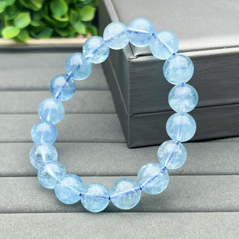 天然海蓝宝手串男女款天蓝色冰透光亮无加色一物一图水晶饰品手链