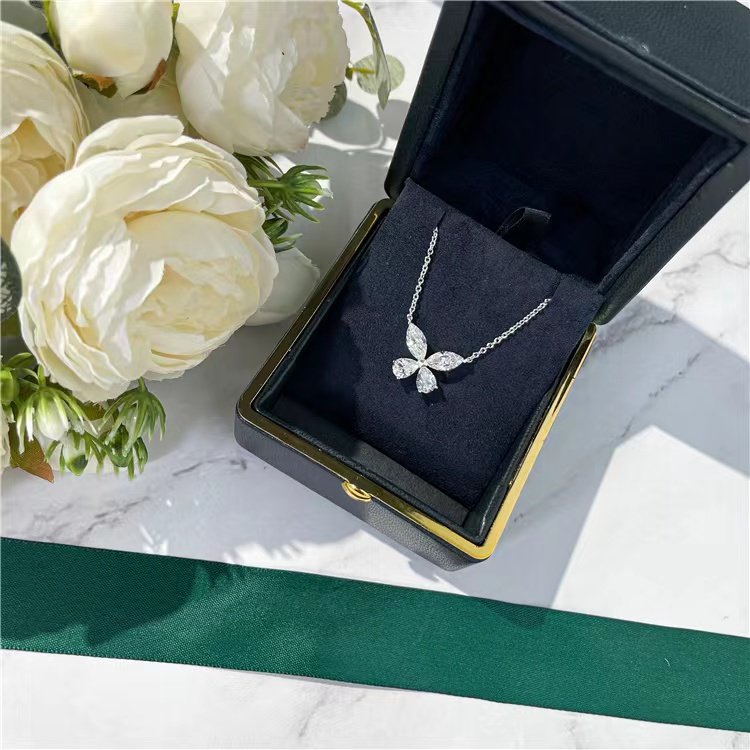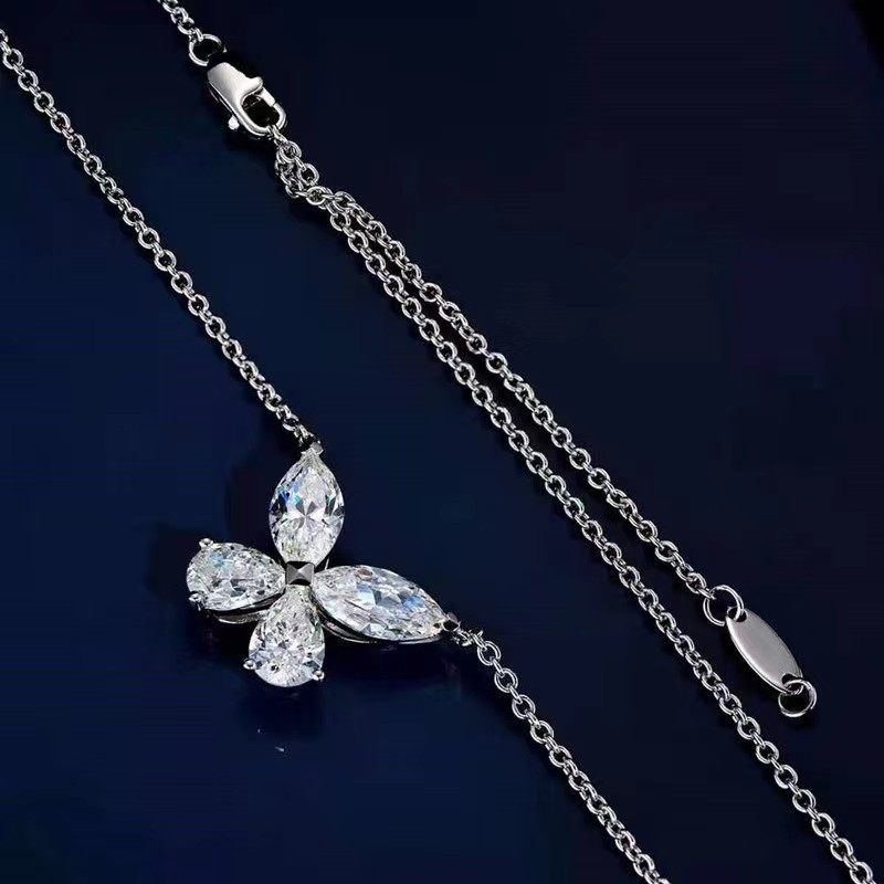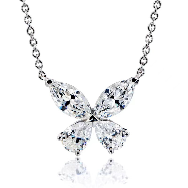 S925莫桑石D色群镶四爪蝴蝶吊坠项链纯银蝴蝶仙气日常通勤百搭
