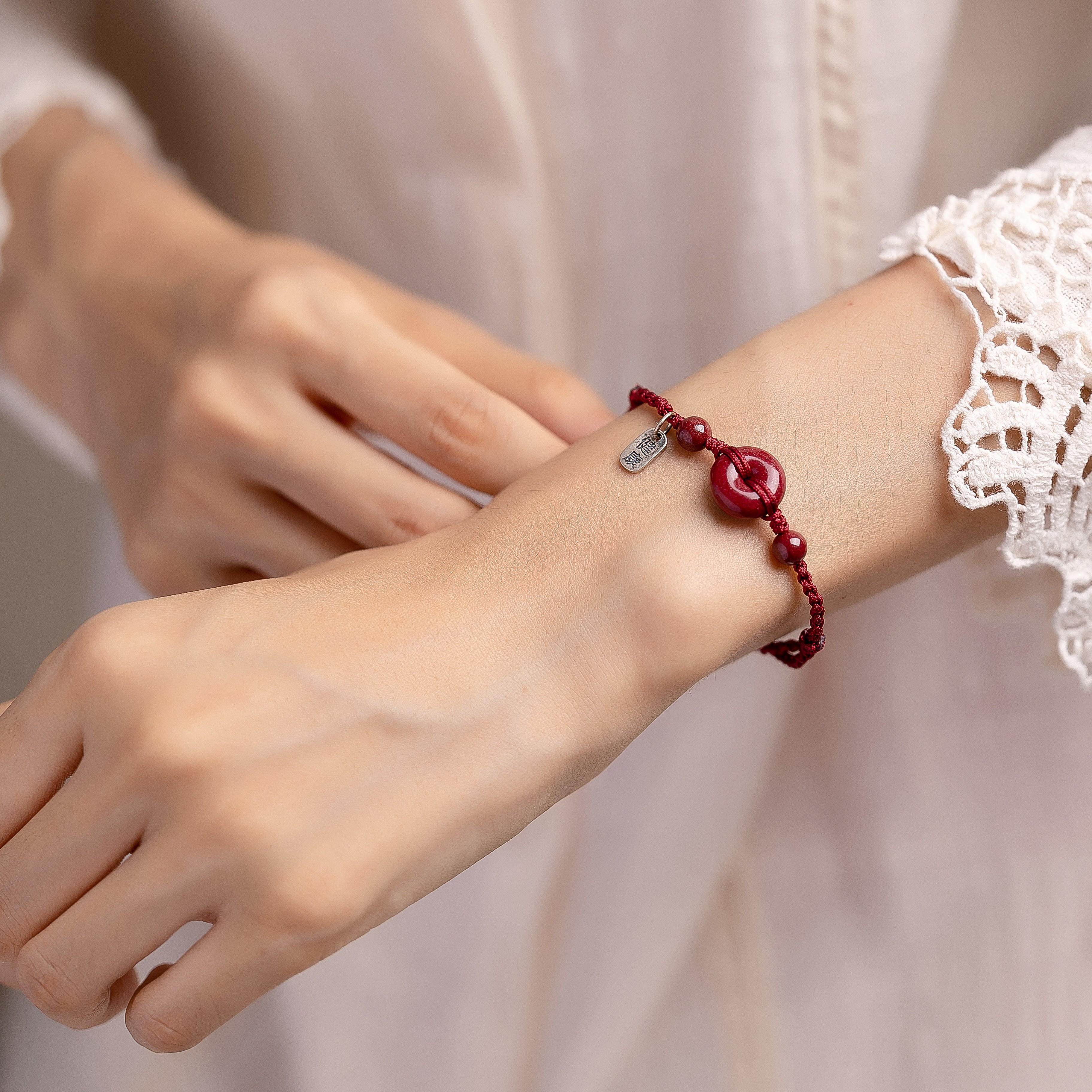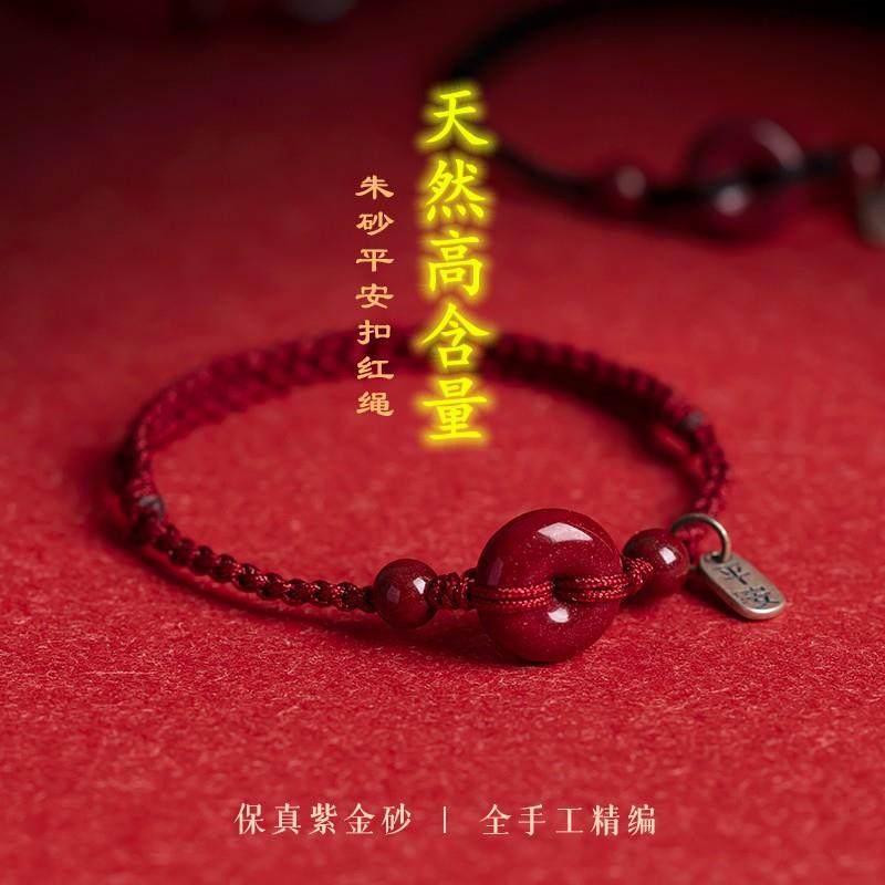 2024龙本命年天然朱砂平安扣红绳手链手串男女本命年编织手绳脚链
