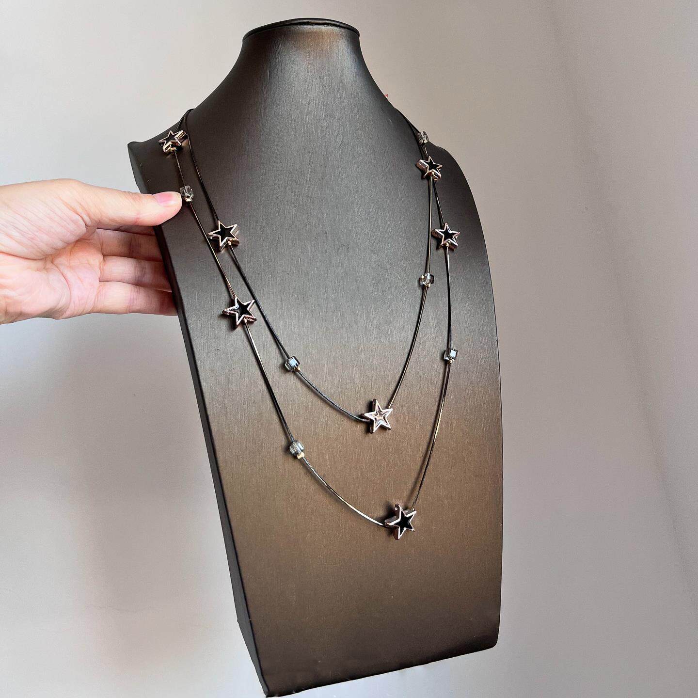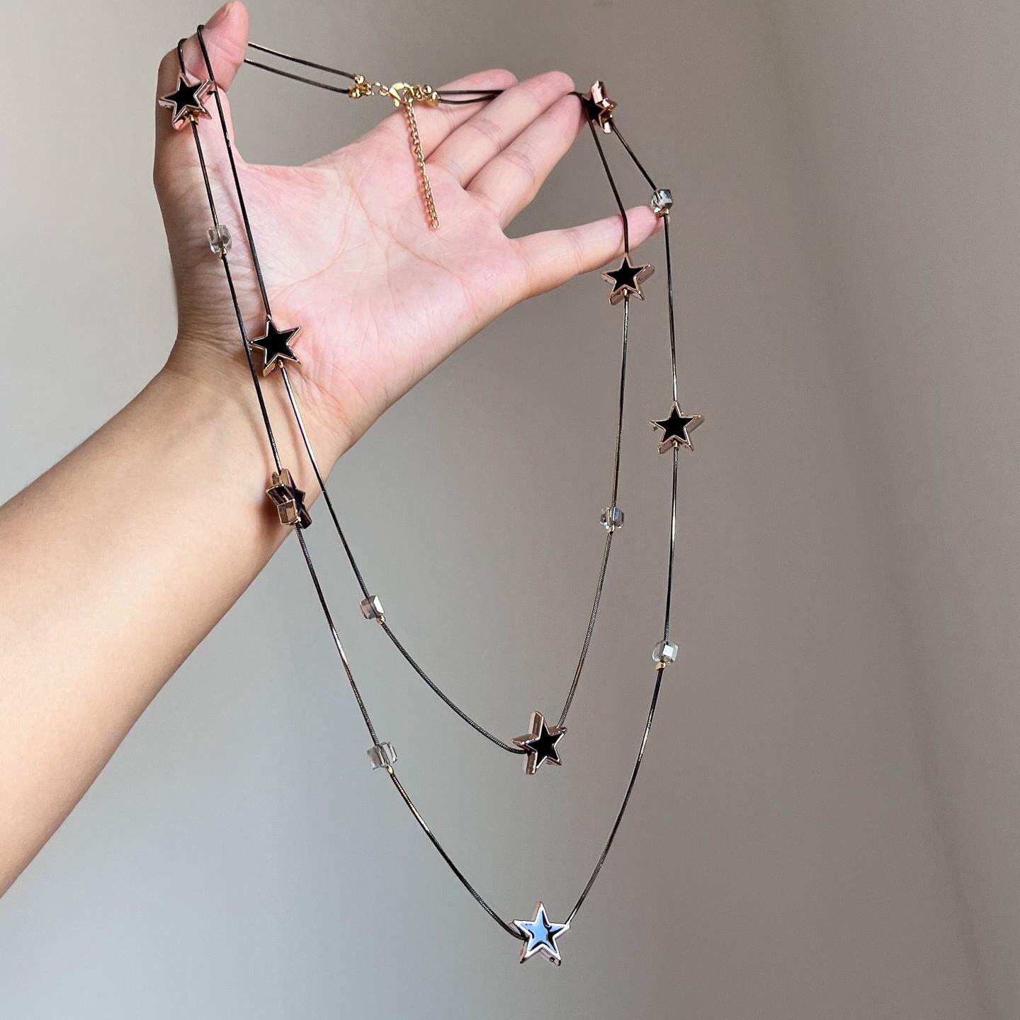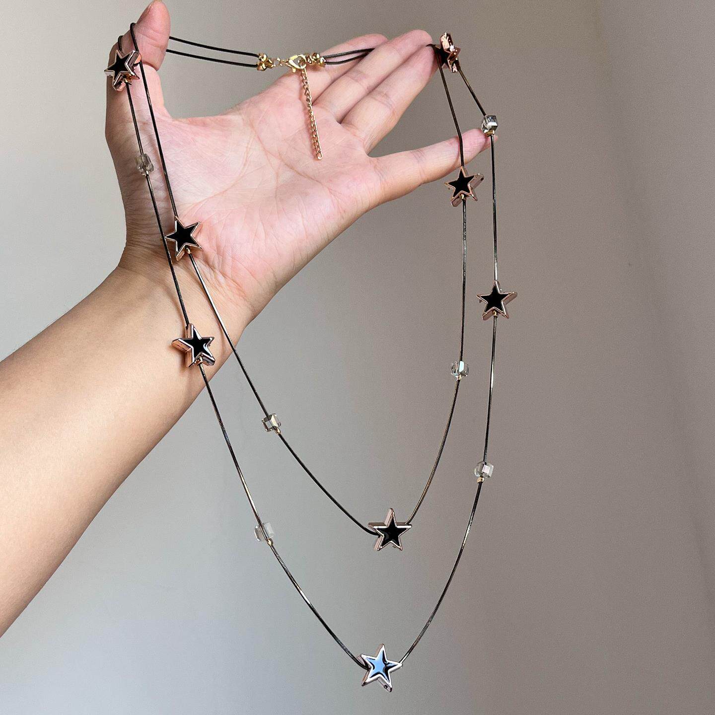 黑色星星双层项链女冷淡风气质百搭颈链高级感轻奢小众毛衣链配饰