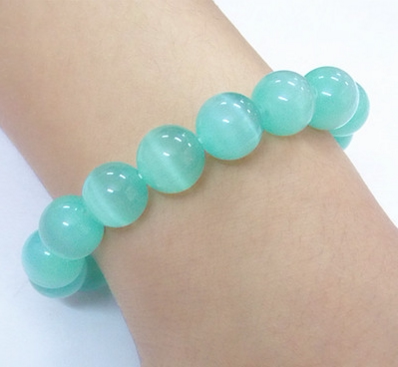 厂家直销产地货源12mm绿猫眼石手链手串绿色珠子1.2cm地摊热卖