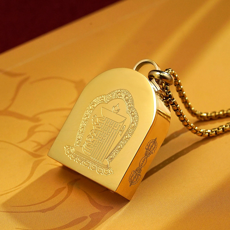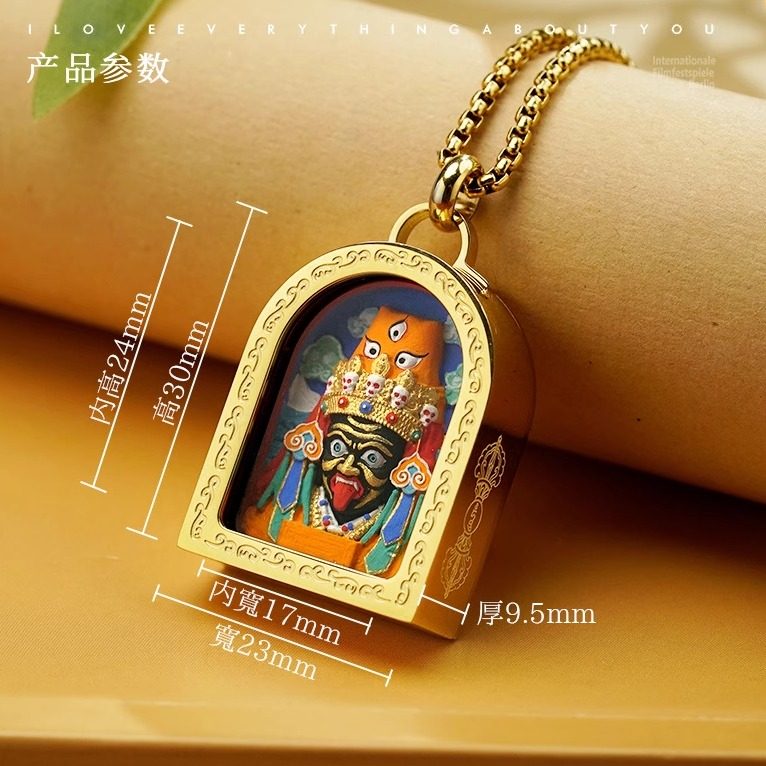 藏式金阁扎基拉姆五爷钛钢立体唐卡吊坠黄财神绿度母手绘擦擦项链