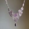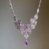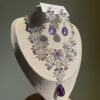 超闪紫色锆石花朵项链耳环套装女小众设计高级晚宴礼服配饰锁骨链