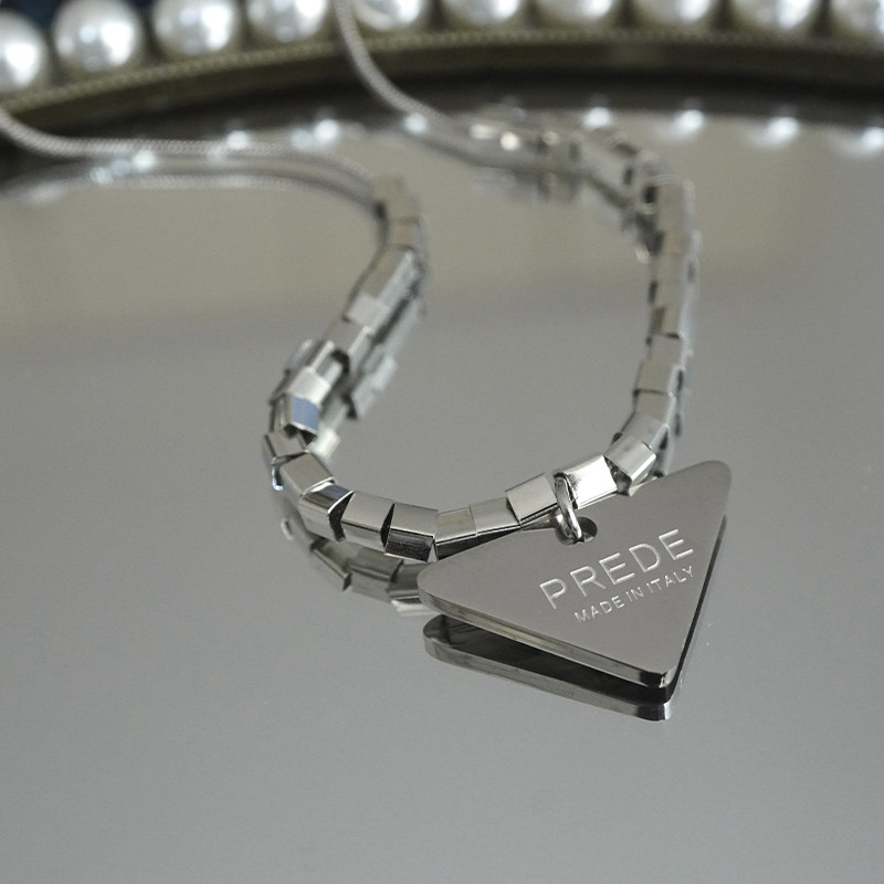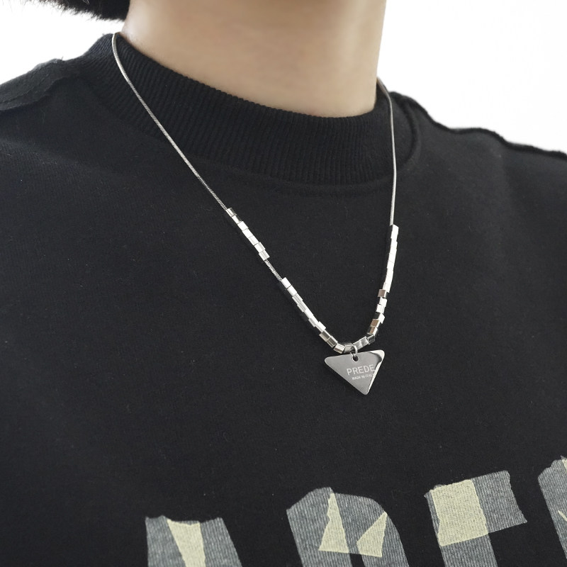 GUXUAN名牌三角牌小方块拼接项链钛钢冷淡风ins嘻哈个性小众饰品