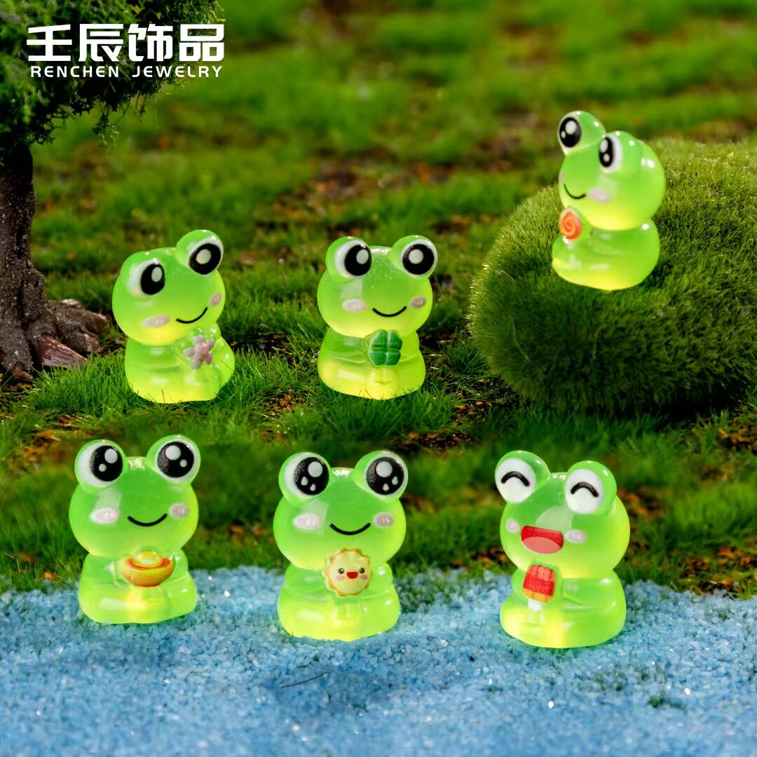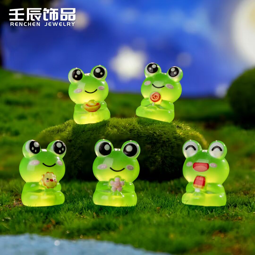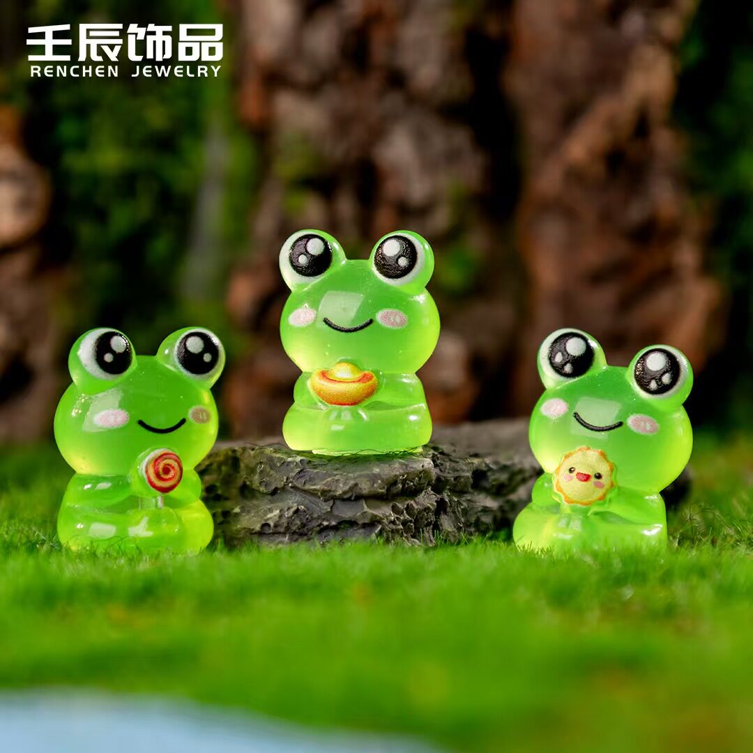 创意立体可爱绿色笑脸青蛙动物摆件diy 树脂工艺品萌粒手工小摆件