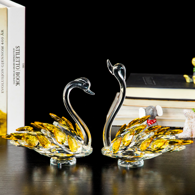 欧式现代水晶天鹅摆件客厅大堂橱窗展示柜简约家居装饰品婚庆礼品