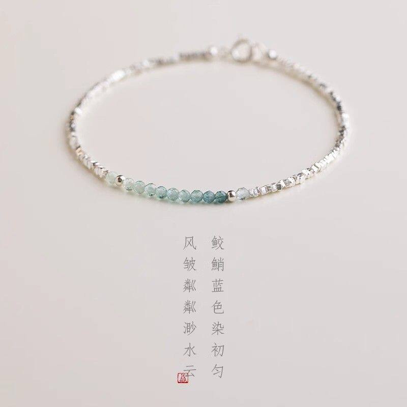 日系cherry kitty新中式碎银子渐变蓝手链女vingate清新百搭手