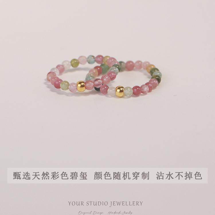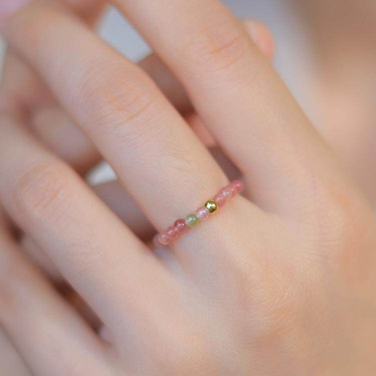 999足金转运珠极细天然彩虹碧玺戒子戒指有弹力正品不褪色轻奢女