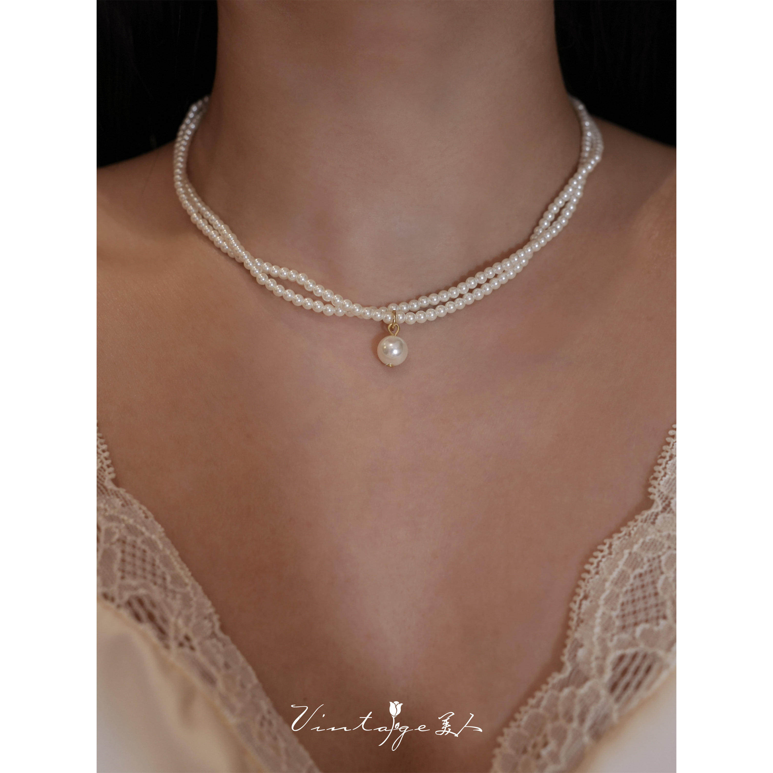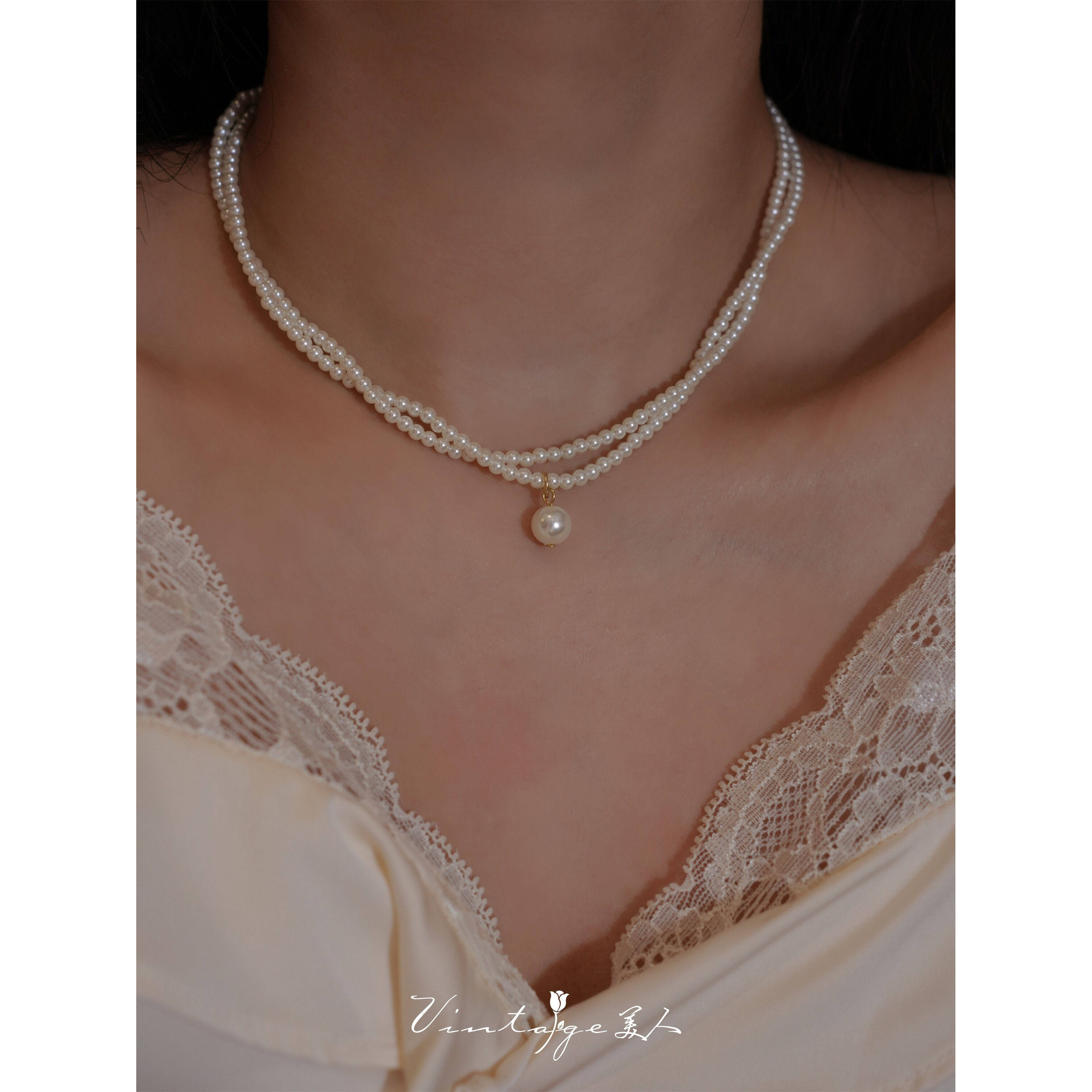 轻奢复古珍珠款项链女小众设计感双层叠戴锁骨链新款气质独特配饰