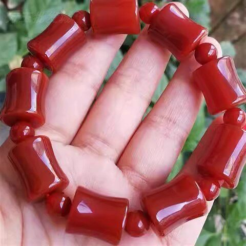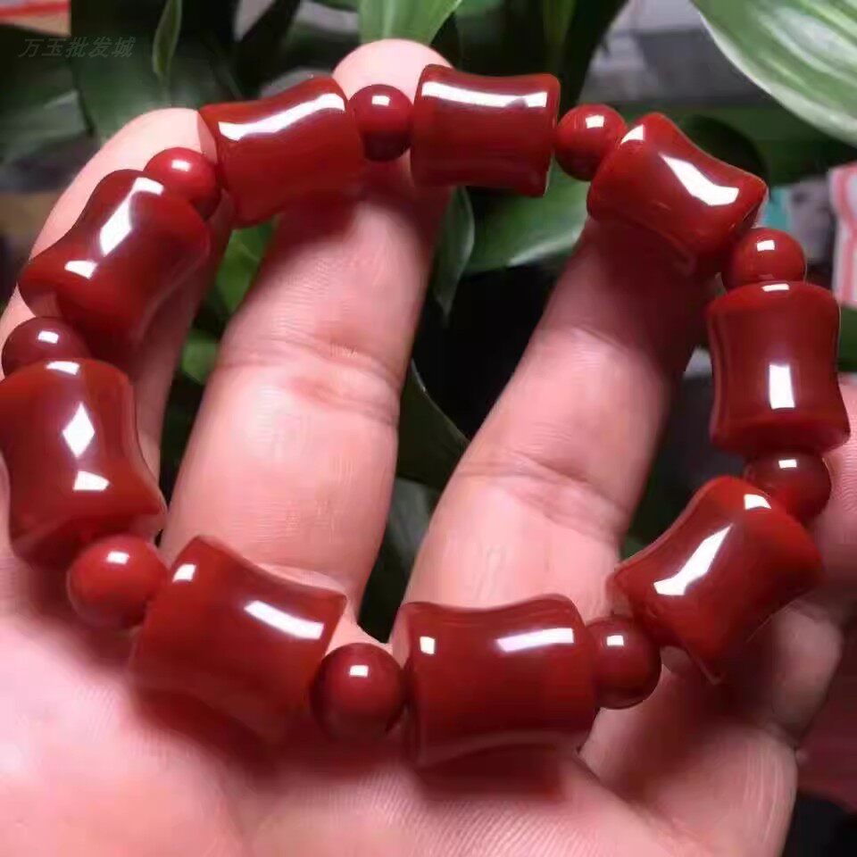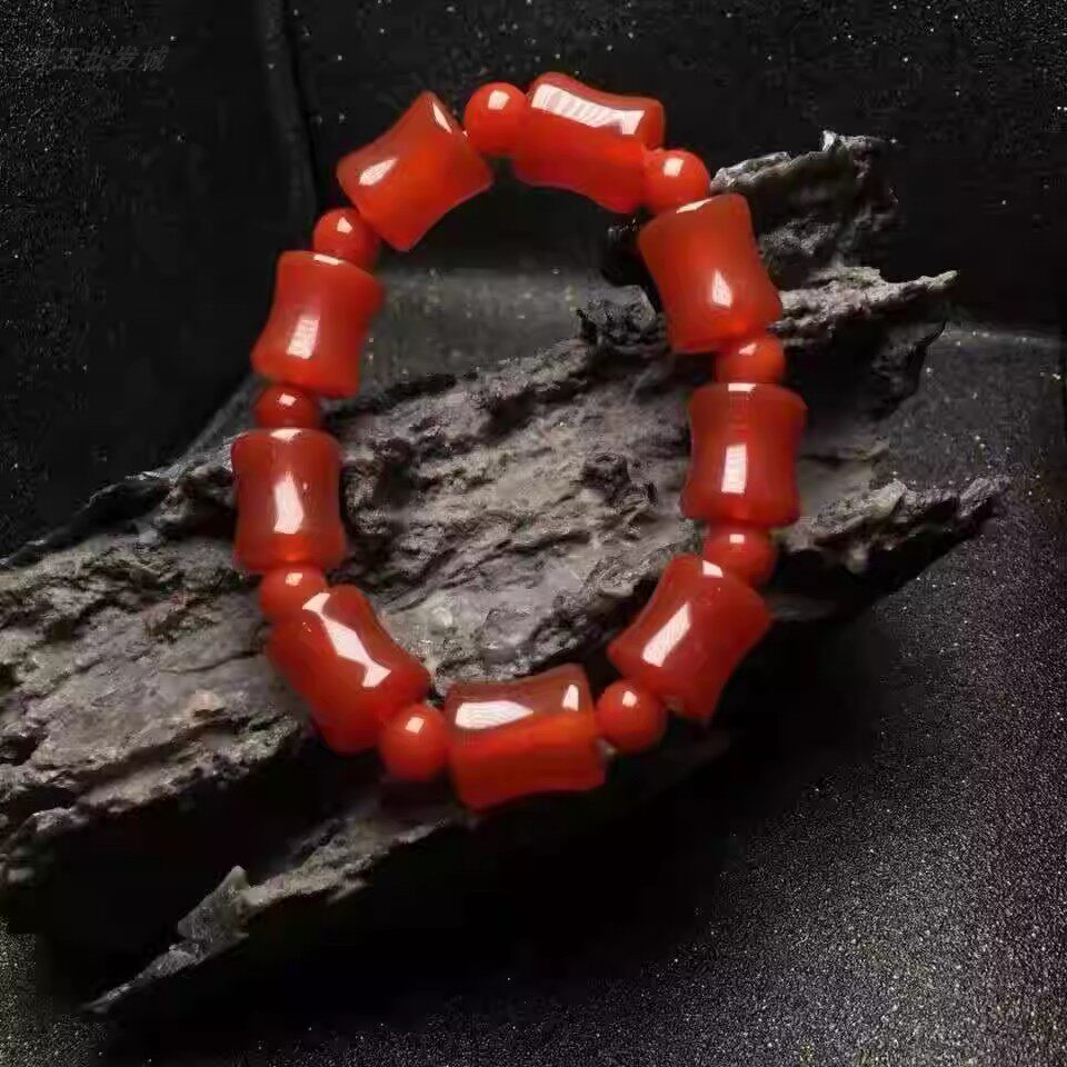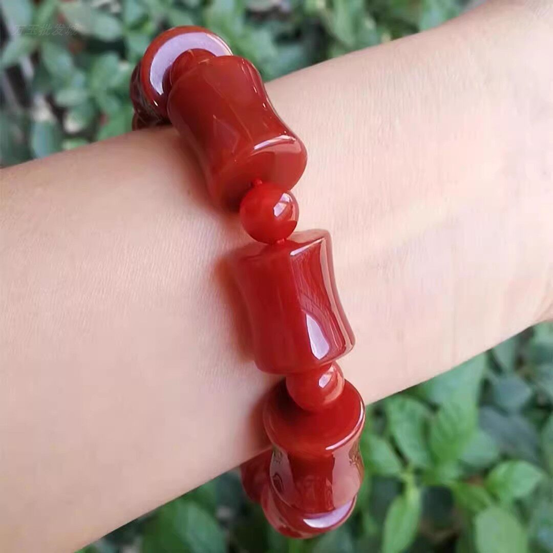 玉手链天然玛瑙手链南红色桶珠手串情侣款玉石手链民族风时尚饰品