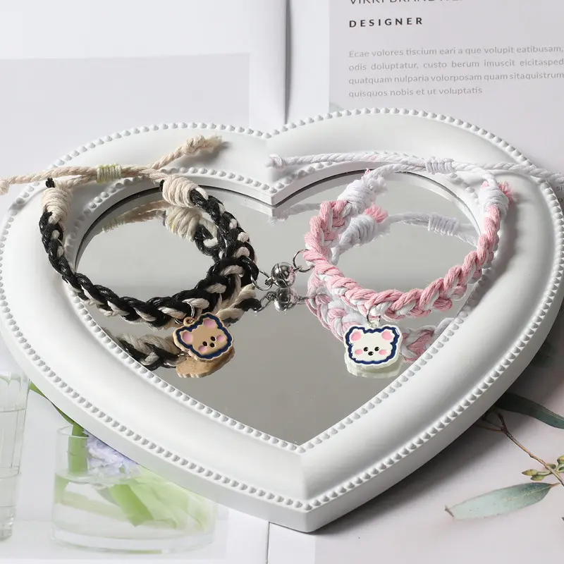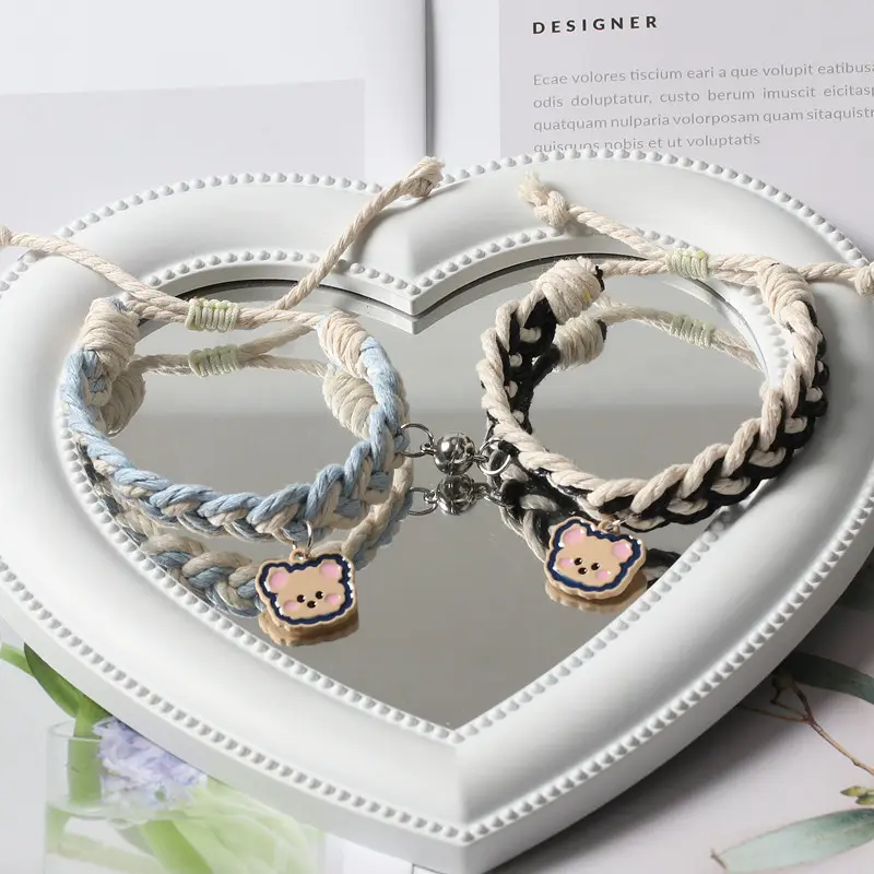 网红闺蜜手链二人一对小学生高颜值三人手链磁铁相吸手环情侣款