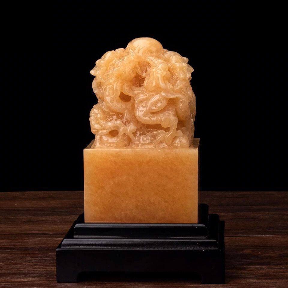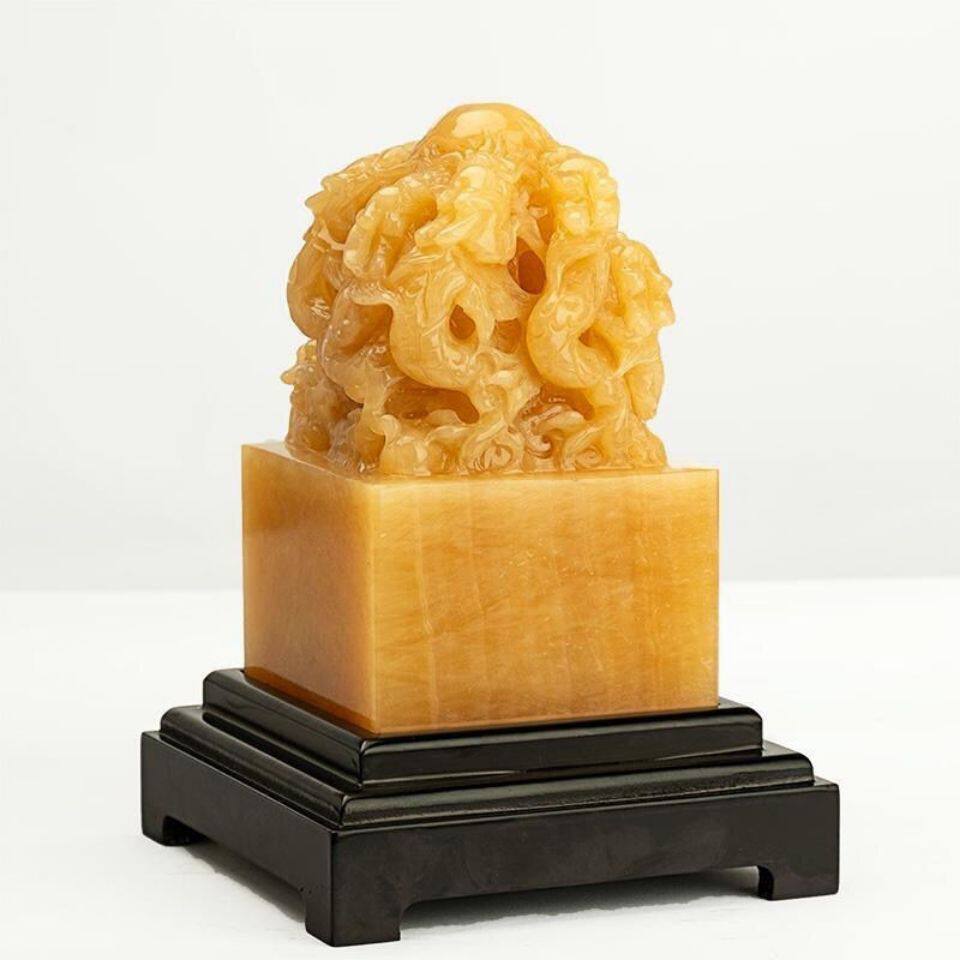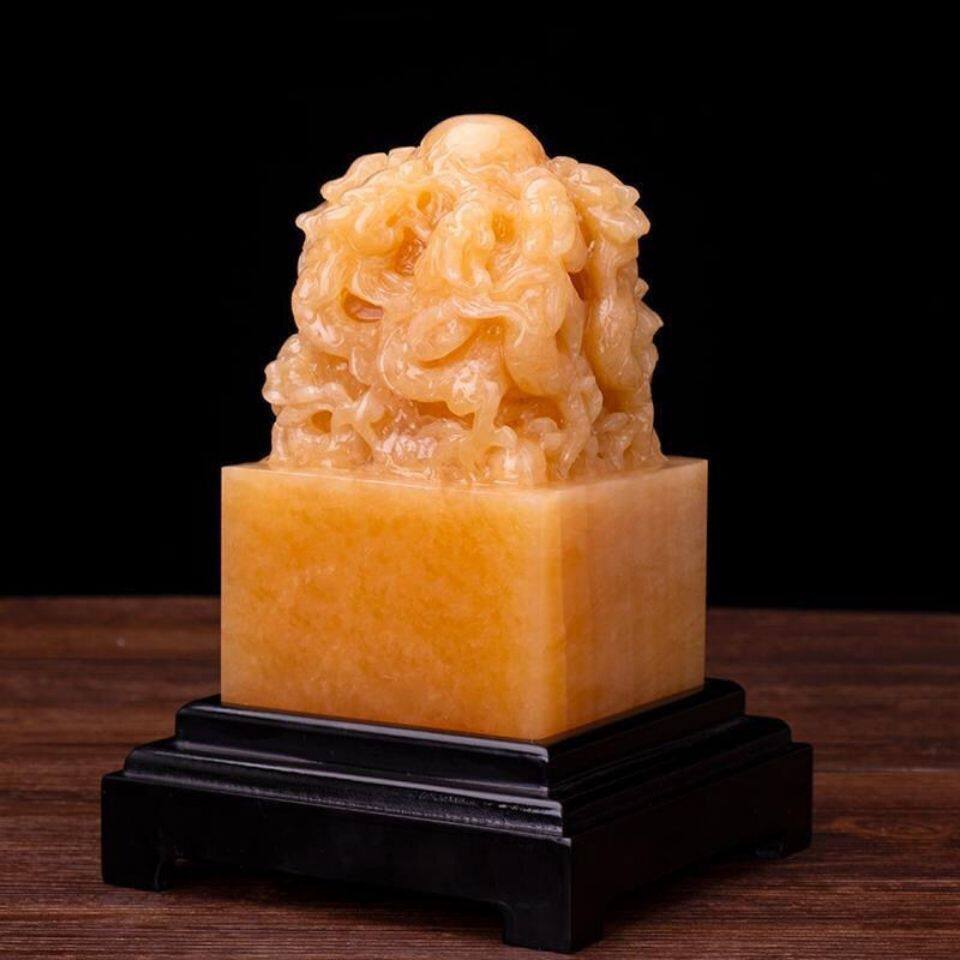 天然玉石印章米黄玉九龙玉玺九龙大印章财印官印玄关宅运摆件礼品