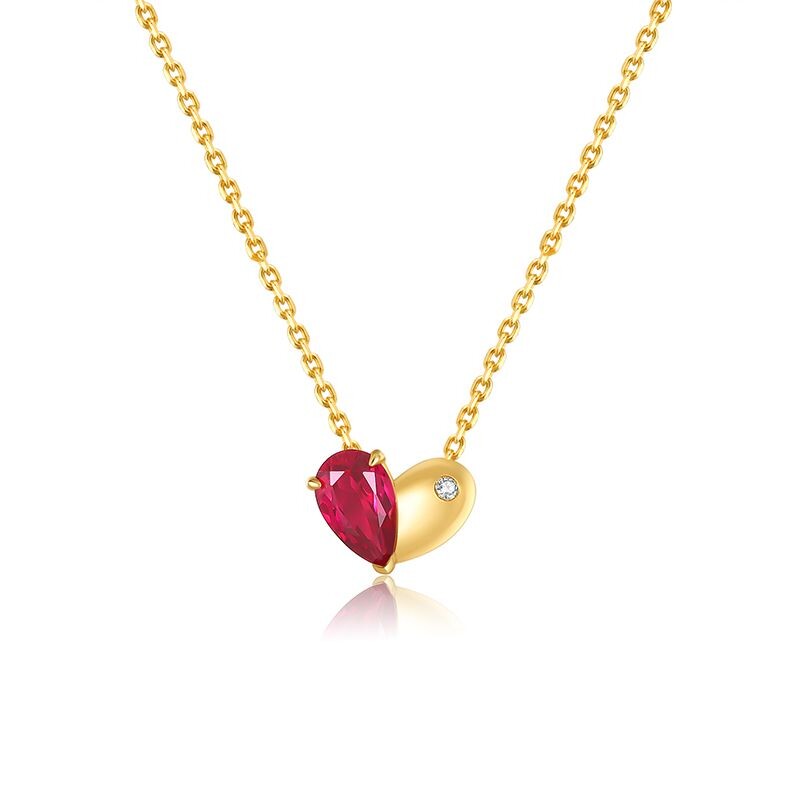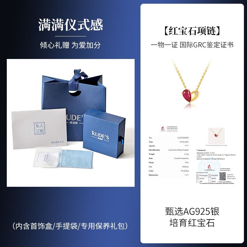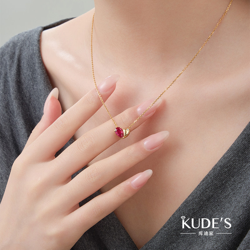 KUDE'S库迪家1.55克拉培育红宝石爱心项链轻奢鸽血红颈饰吊坠P032
