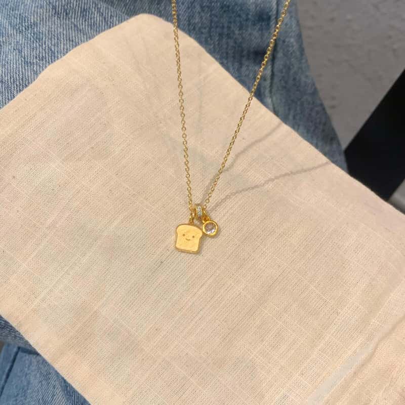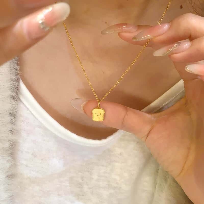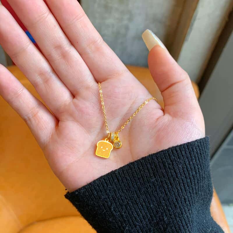 金色卡通吐司面包跑环项链精致可爱独特小众设计感时尚百搭锁骨链