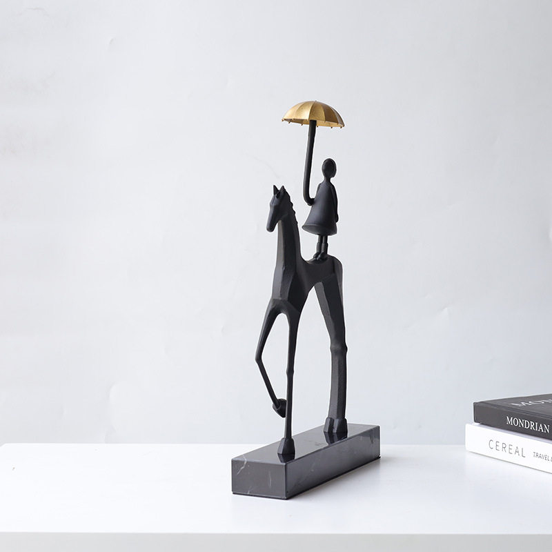 现代抽象简约艺术铸铁大理石黑色摆件样板间直播间书柜软装饰品