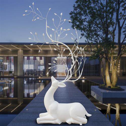 不锈钢镂空梅花鹿雕塑玻璃钢白色鹿摆件售楼部酒店大堂艺术装饰品