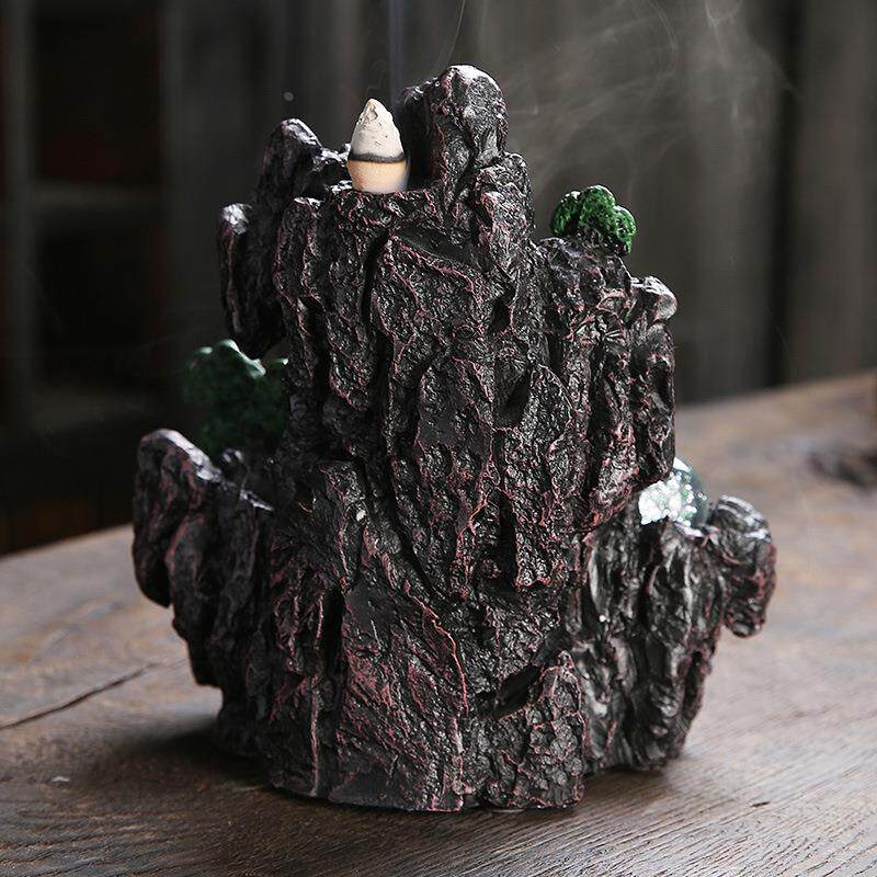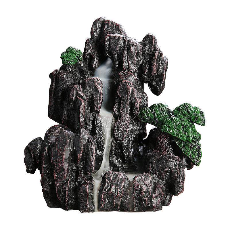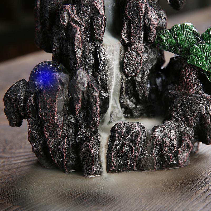 跨境供应树脂工艺品家居摆件香炉 创意高山流水LED灯饰品倒流香炉