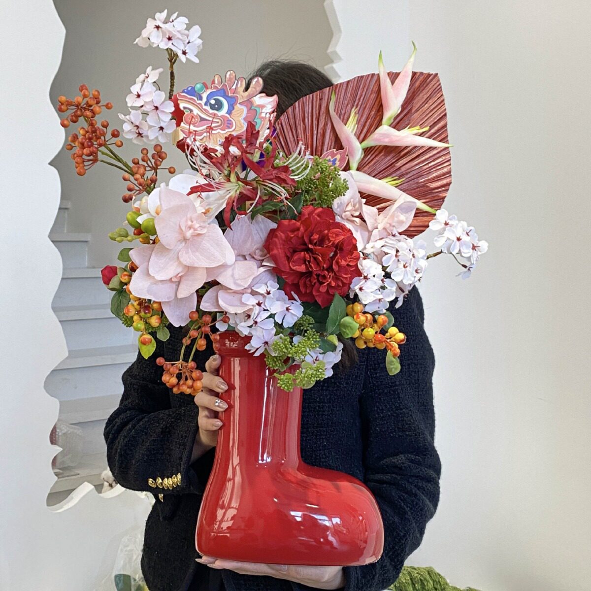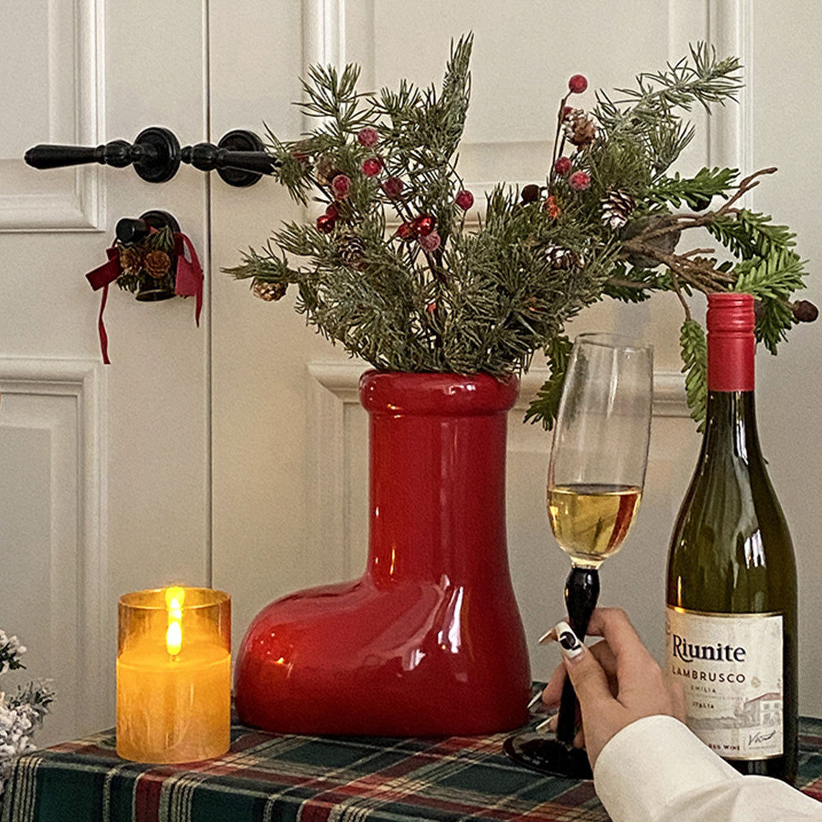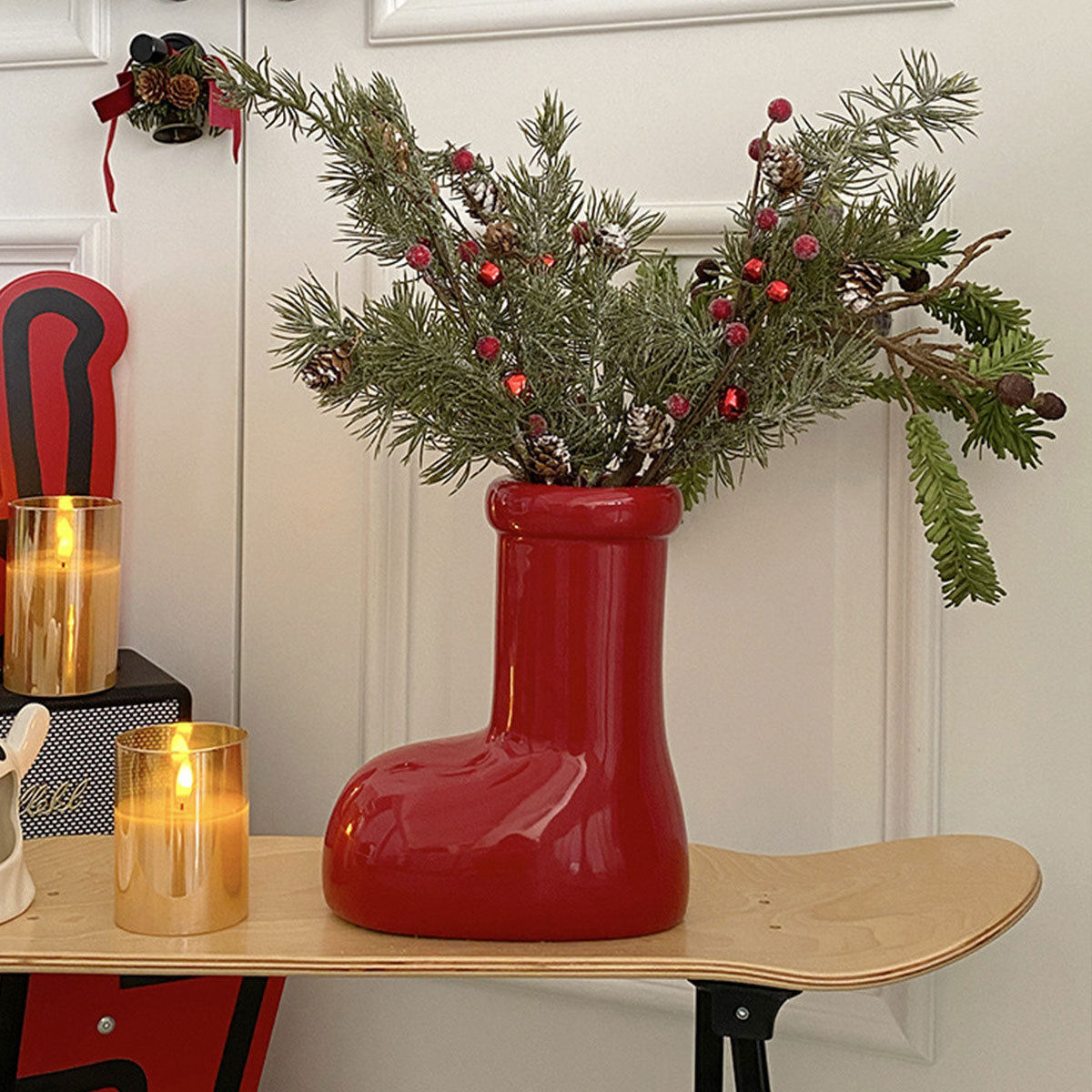木工小舅 红鞋子陶瓷花瓶轻奢摆件 高级感小众喜庆家居插花器装饰