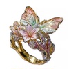 Wish新款饰品 欧美精致闪钻滴油蝴蝶花朵女士开口粉色戒指独立站
