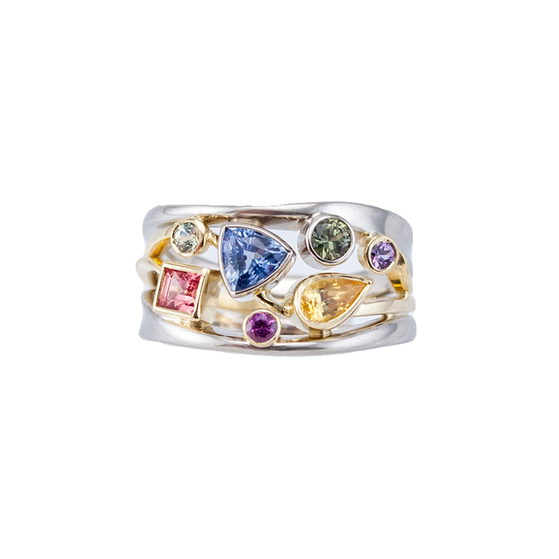 热卖精美多色几何图案女士戒指镶锆石波浪线条指环