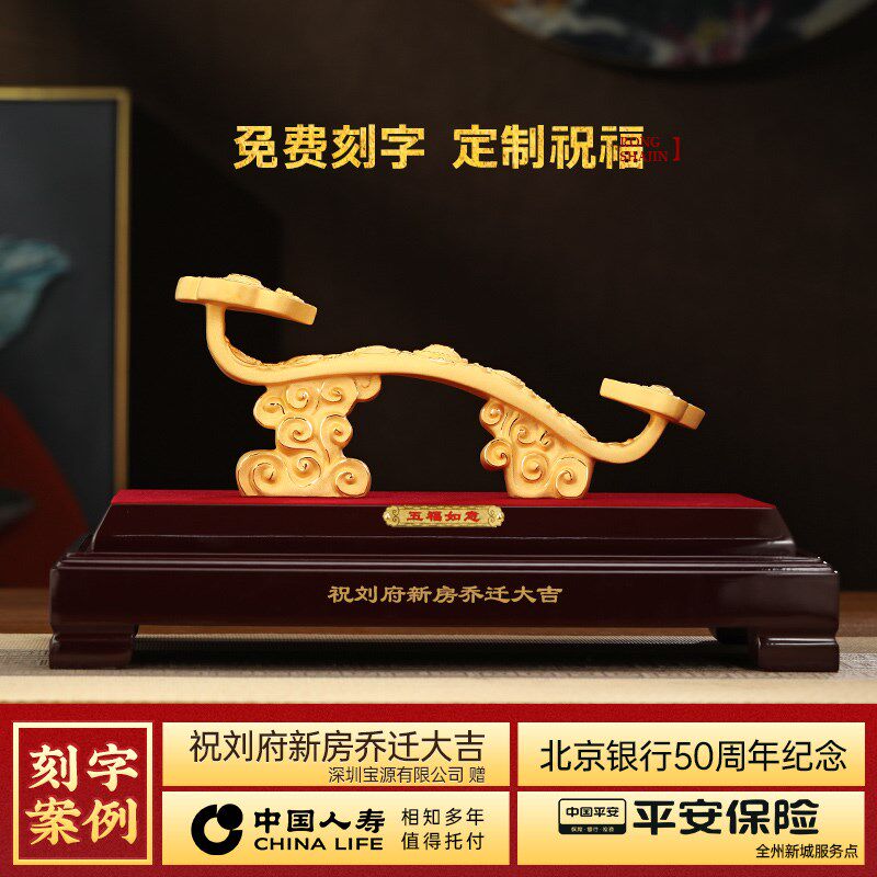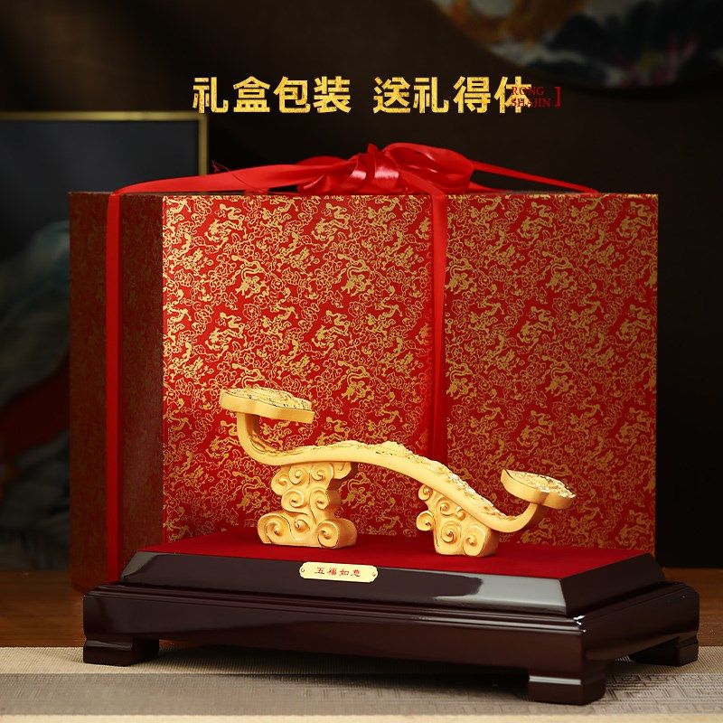 绒沙金五福如意i摆件客厅电视柜酒柜玉如意高档装饰品乔迁新居礼