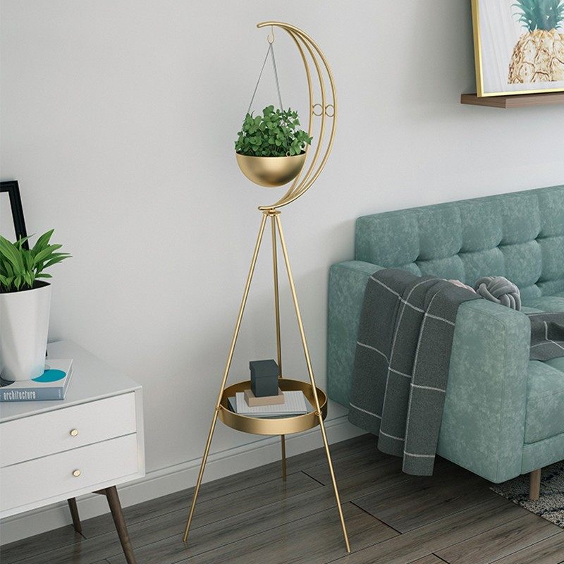 北欧轻奢金色铁艺花架家居客厅花盆吊篮架家用店铺落地置物架摆件