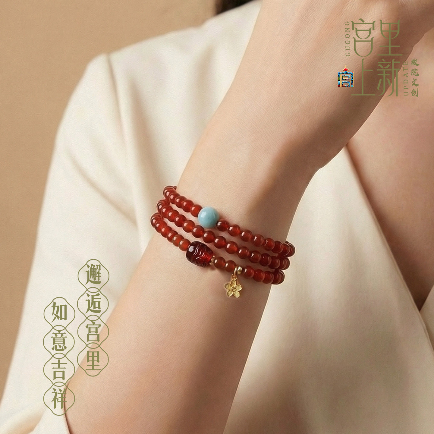 宫里上新石榴石手串女款三圈天然水晶手链女红色本命年母亲节礼物