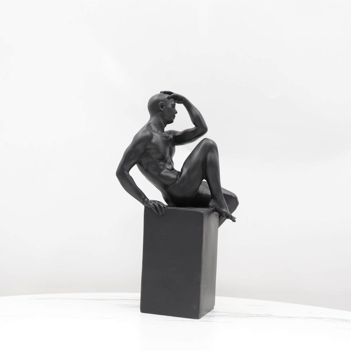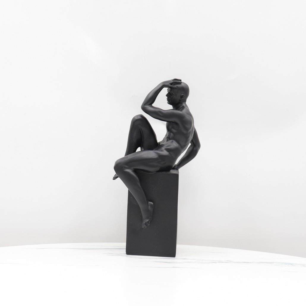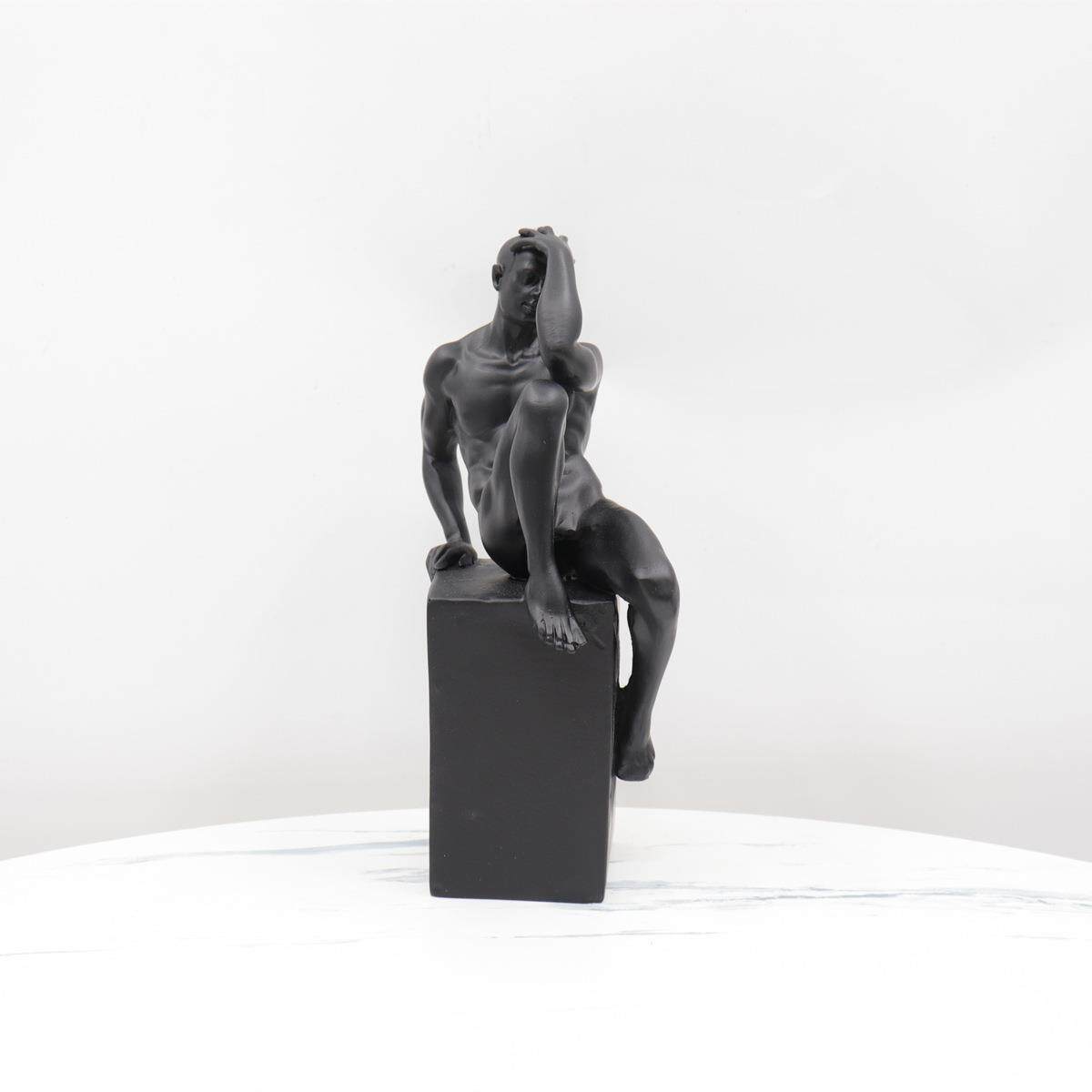 现代简约黑色抽象人像雕塑摆件样板房售楼处玄关坐姿人物软装饰品
