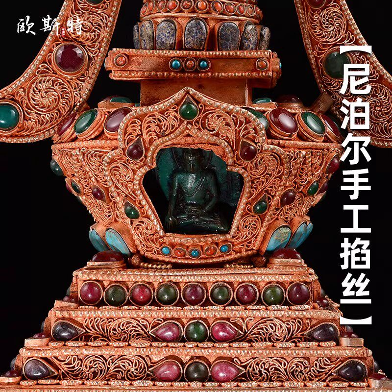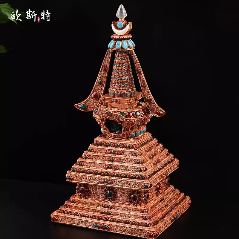 欧斯特 西藏佛塔 尼泊尔掐丝手工菩提塔佛具用品噶当塔 宝塔摆件