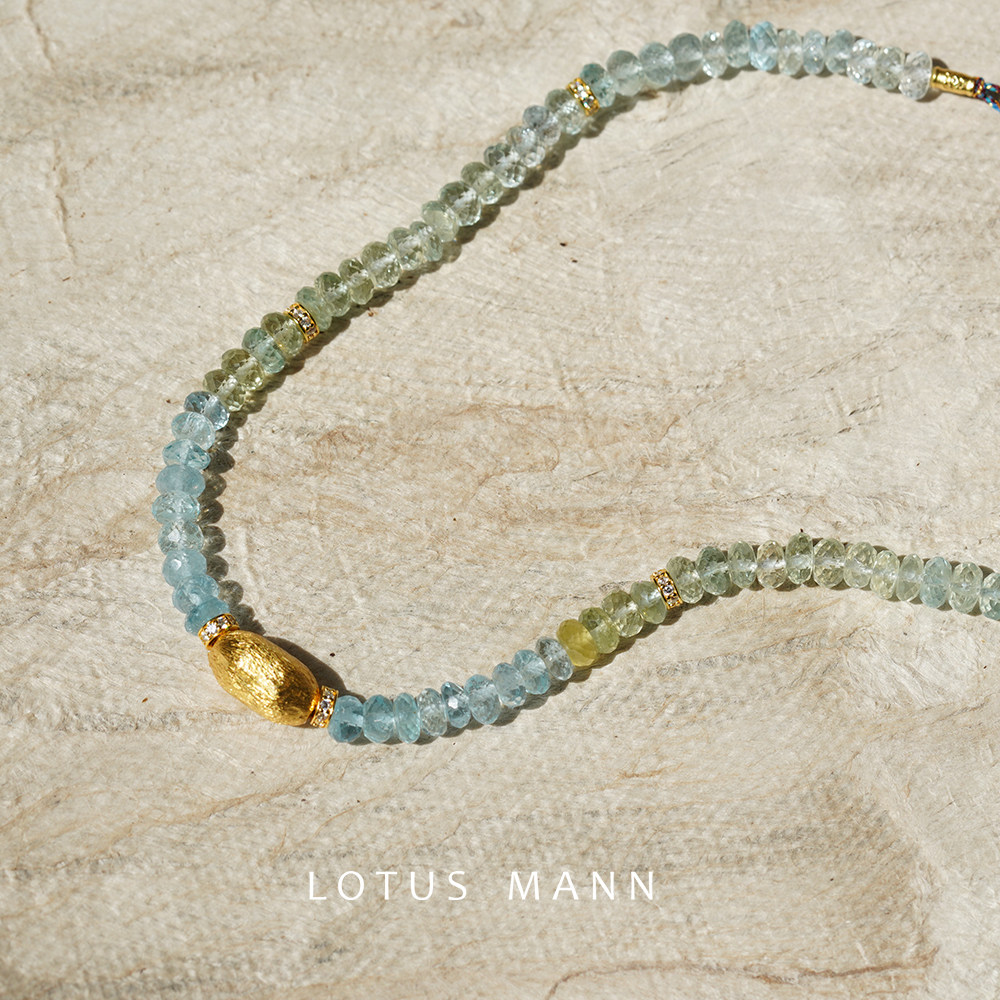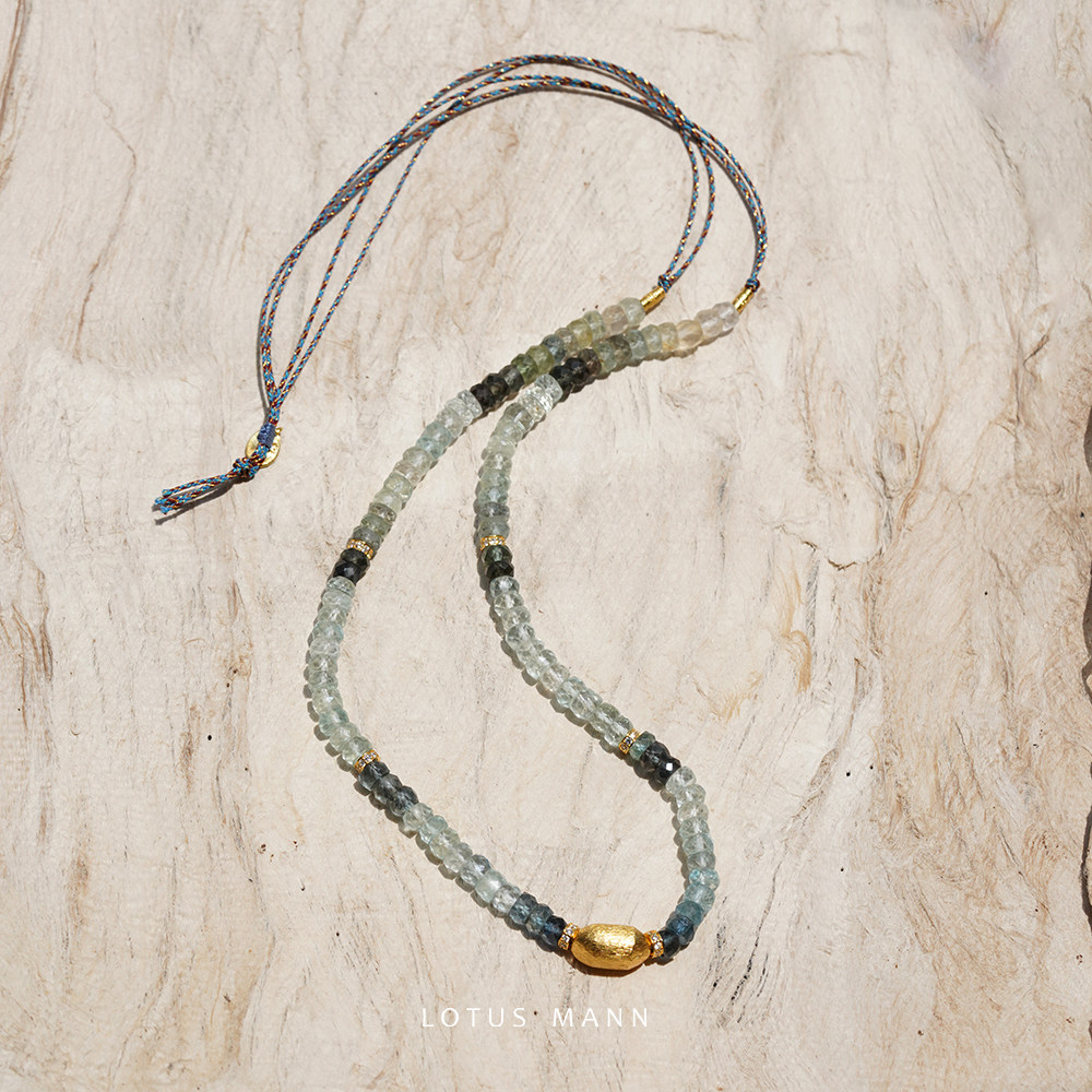 海之境. 闪耀渐变原矿海蓝宝与银镀金可调节项链