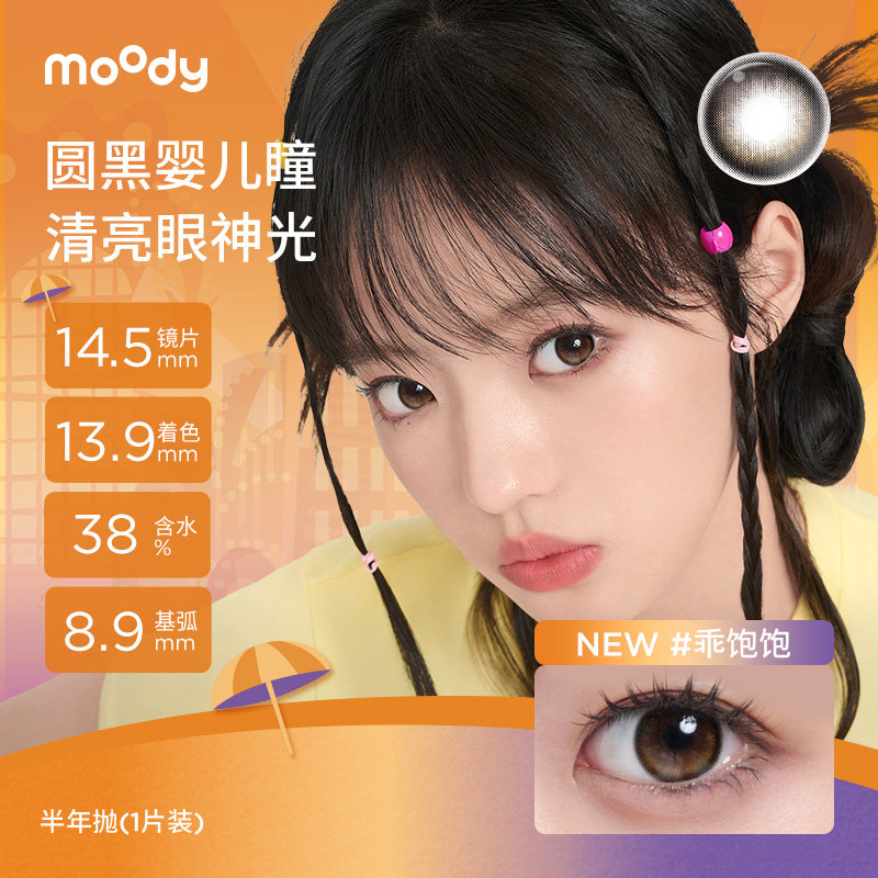 moody美瞳半年抛疯狂动物城2合作尼尼粉彩色隐形眼镜黑桃冰茶2片