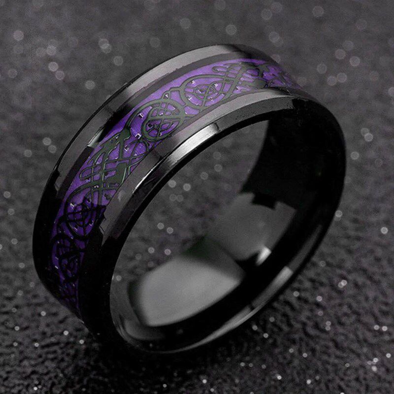2023 Fashion Men Stainless Steel Dragon Ring Inlay Purple Bl
