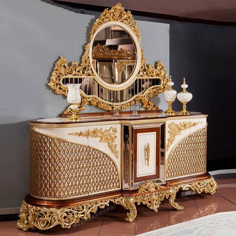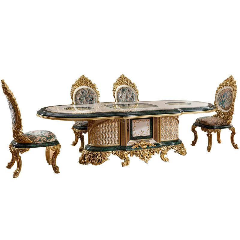 法式餐桌餐椅实木雕花贴金箔法式长餐桌法式布艺餐椅欧式长餐桌椅